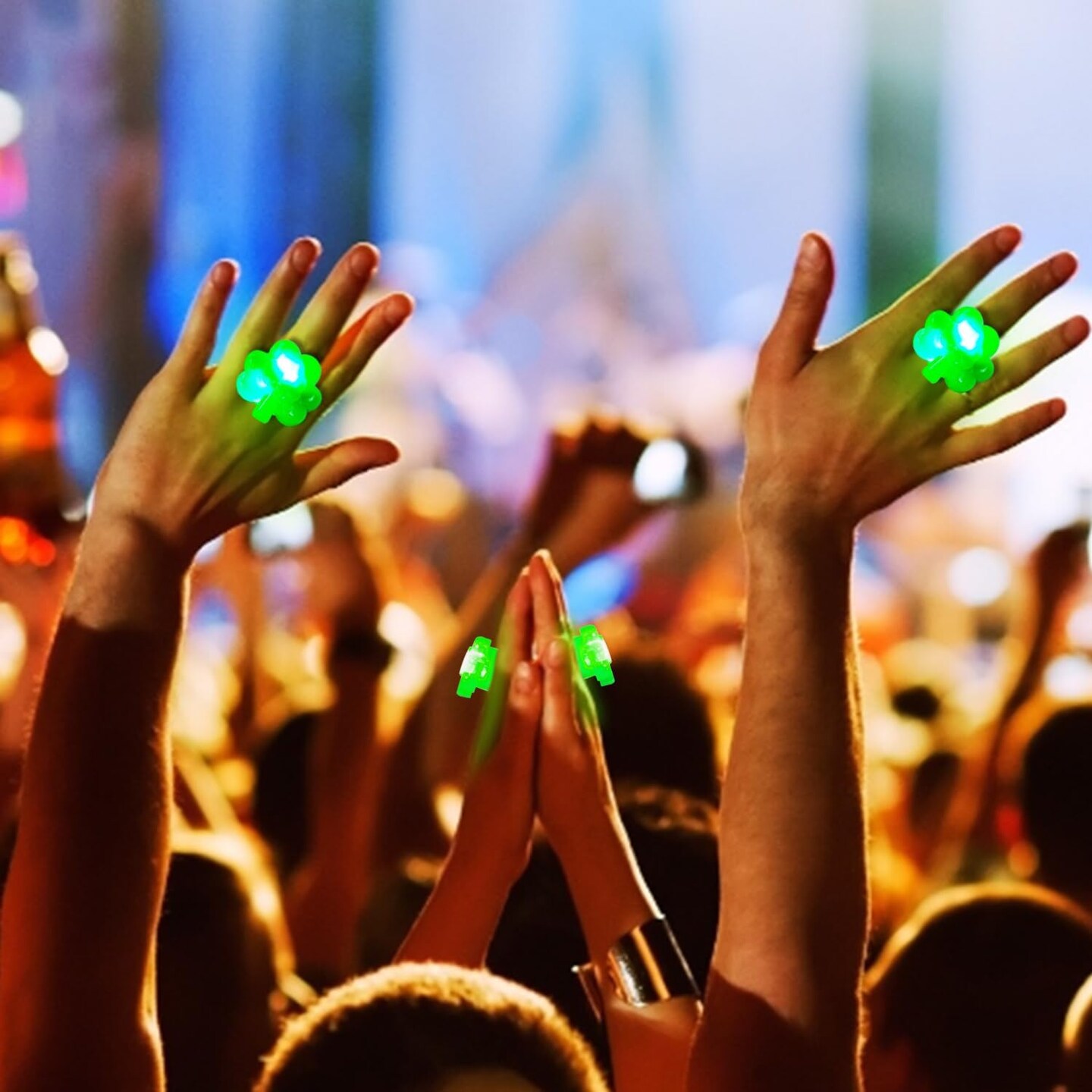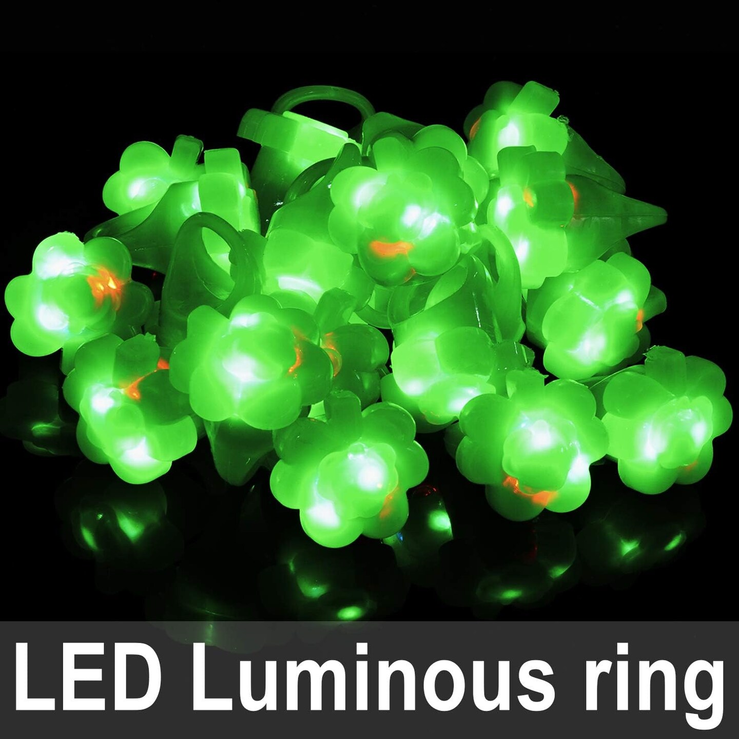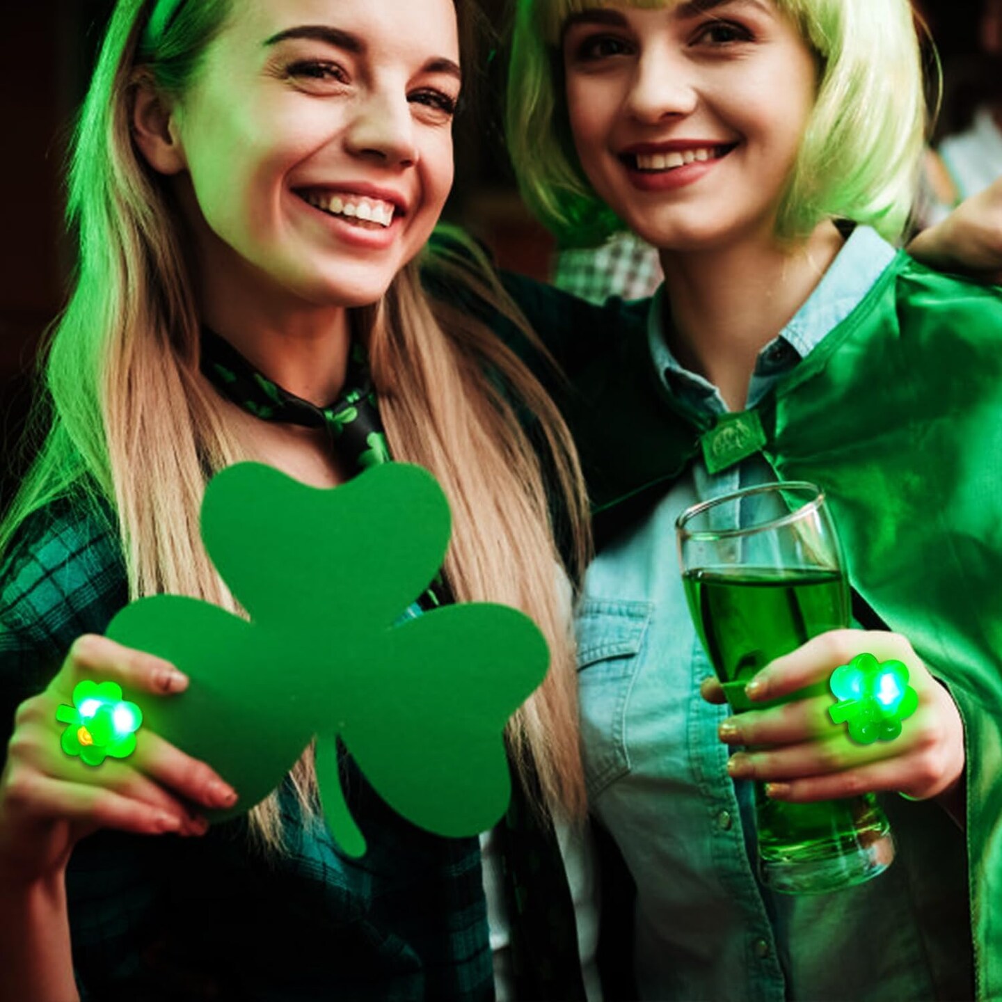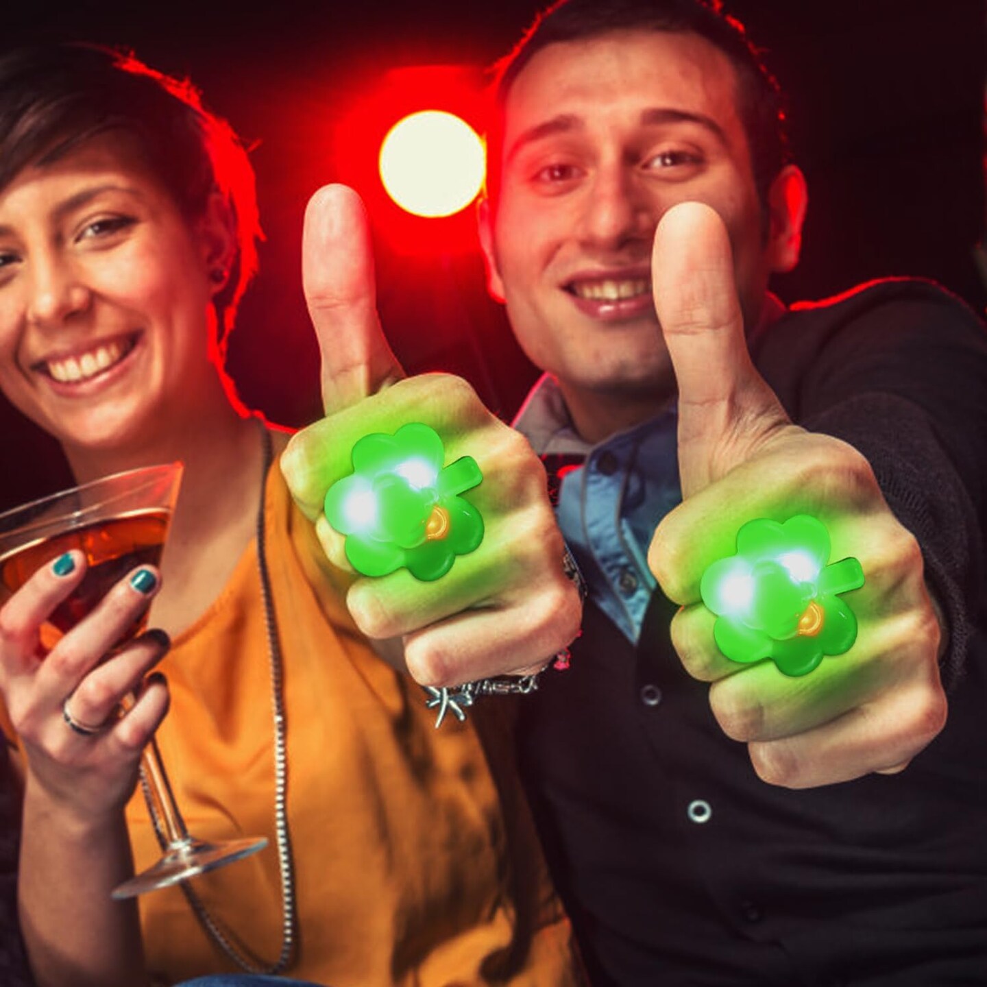 24 Pack St. Patricks Day Green Shamrocks LED Light Up Ring for Adults St. Patricks Party Accessories Favors LED Finger Lights Glow in The Dark Carnival Party Supplies Gift Toy