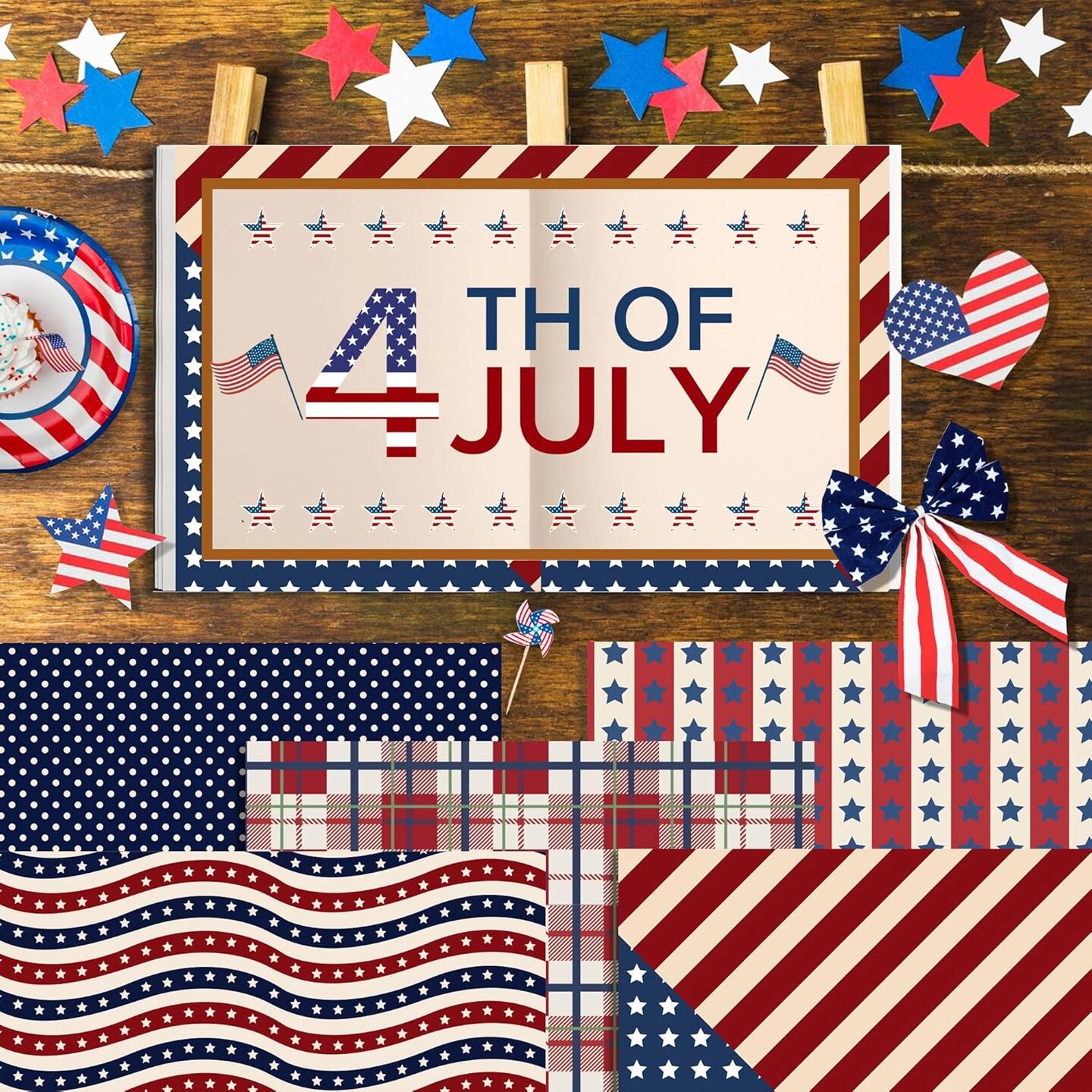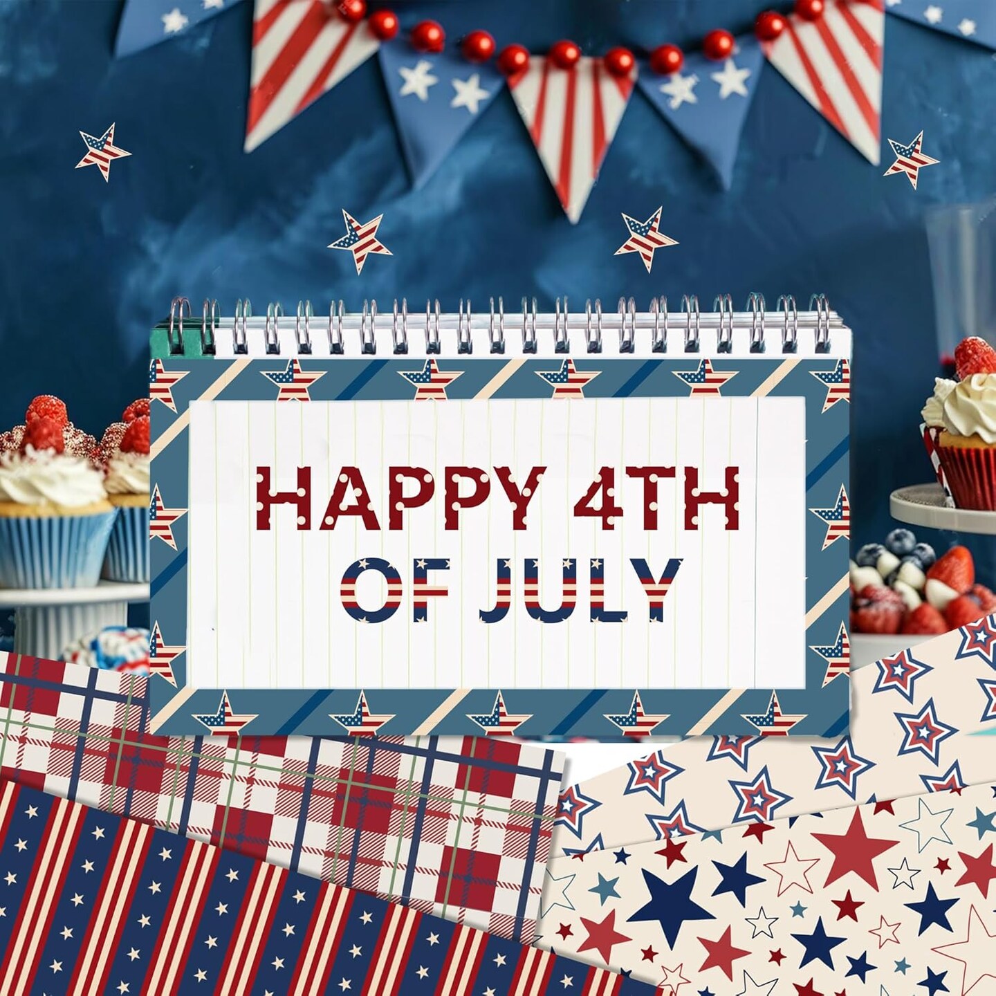 24 Pack Vintage American Flag Double-Sided Scrapbook Paper (12 Inches)