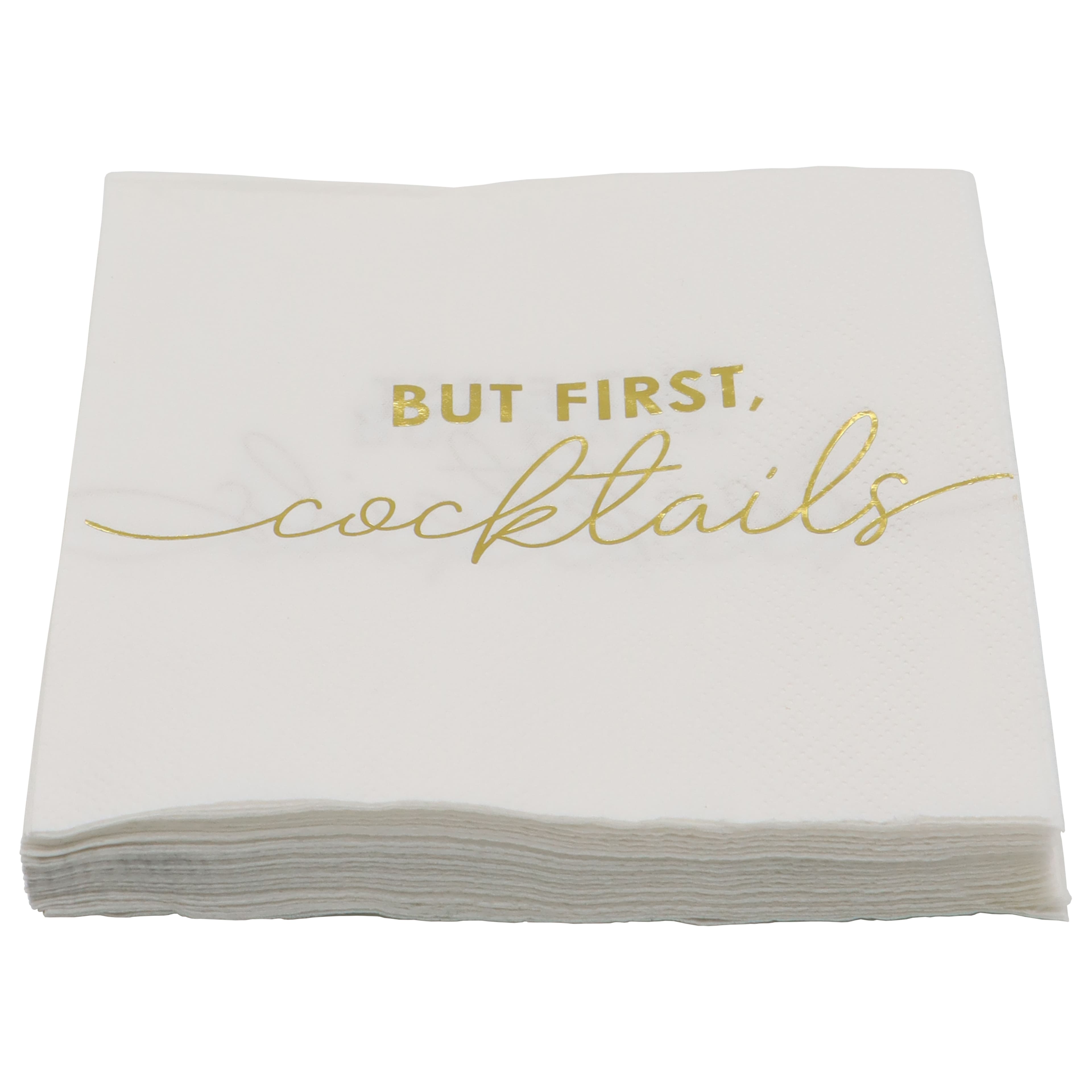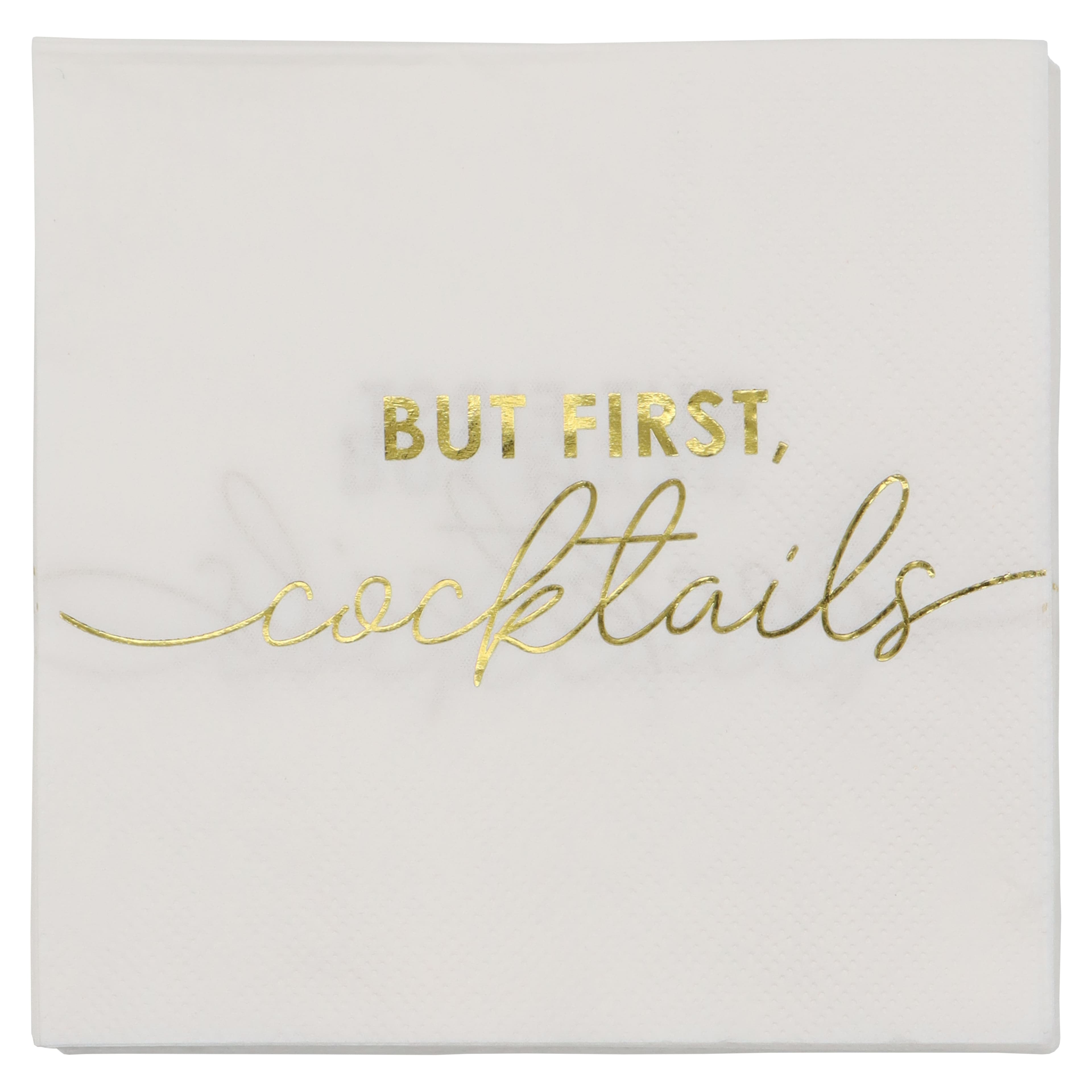 24 Packs: 20 ct. (480 total) Gold & White But First Cocktails Beverage Napkins by Celebrate It™