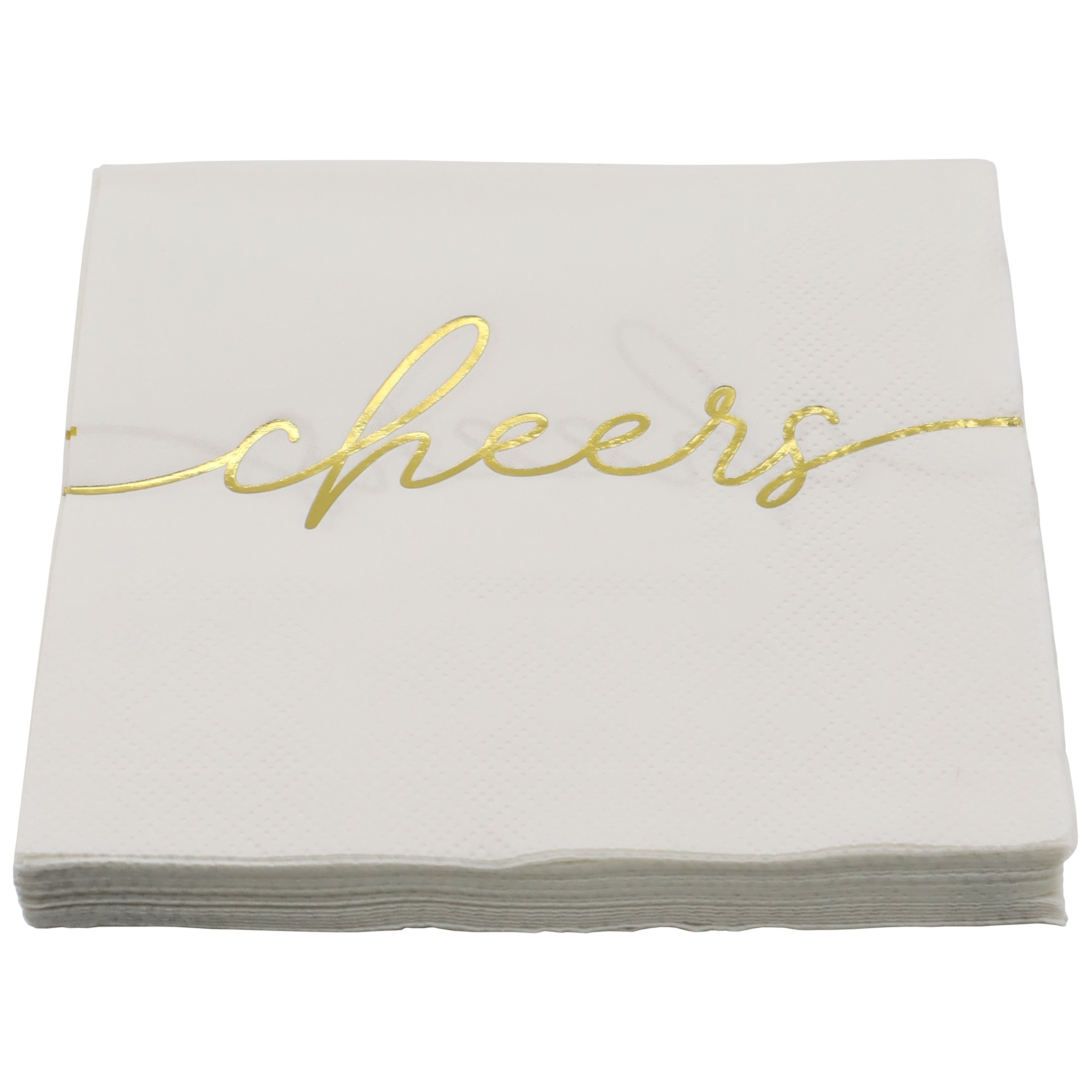 24 Packs: 20 ct. (480 total) Gold & White Cheers Beverage Napkins by Celebrate It™