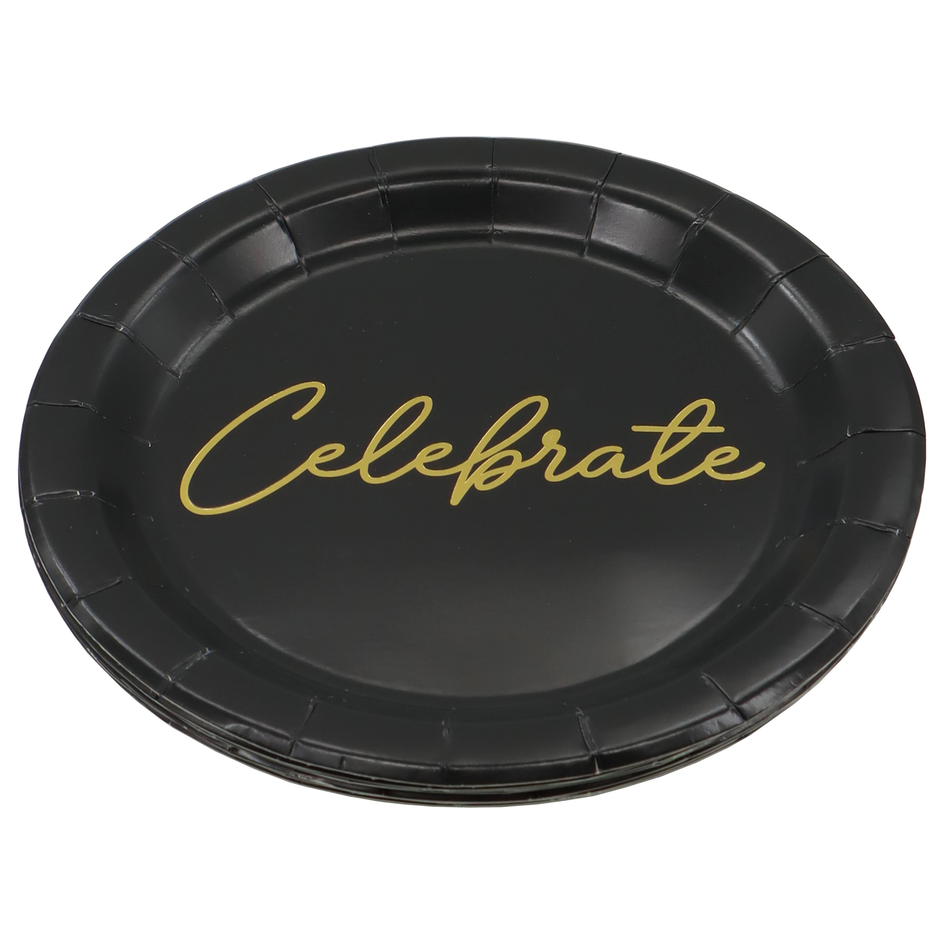 24 Packs: 8 ct. (192 total) 7" Black & Gold Celebrate Snack Plates by Celebrate It™