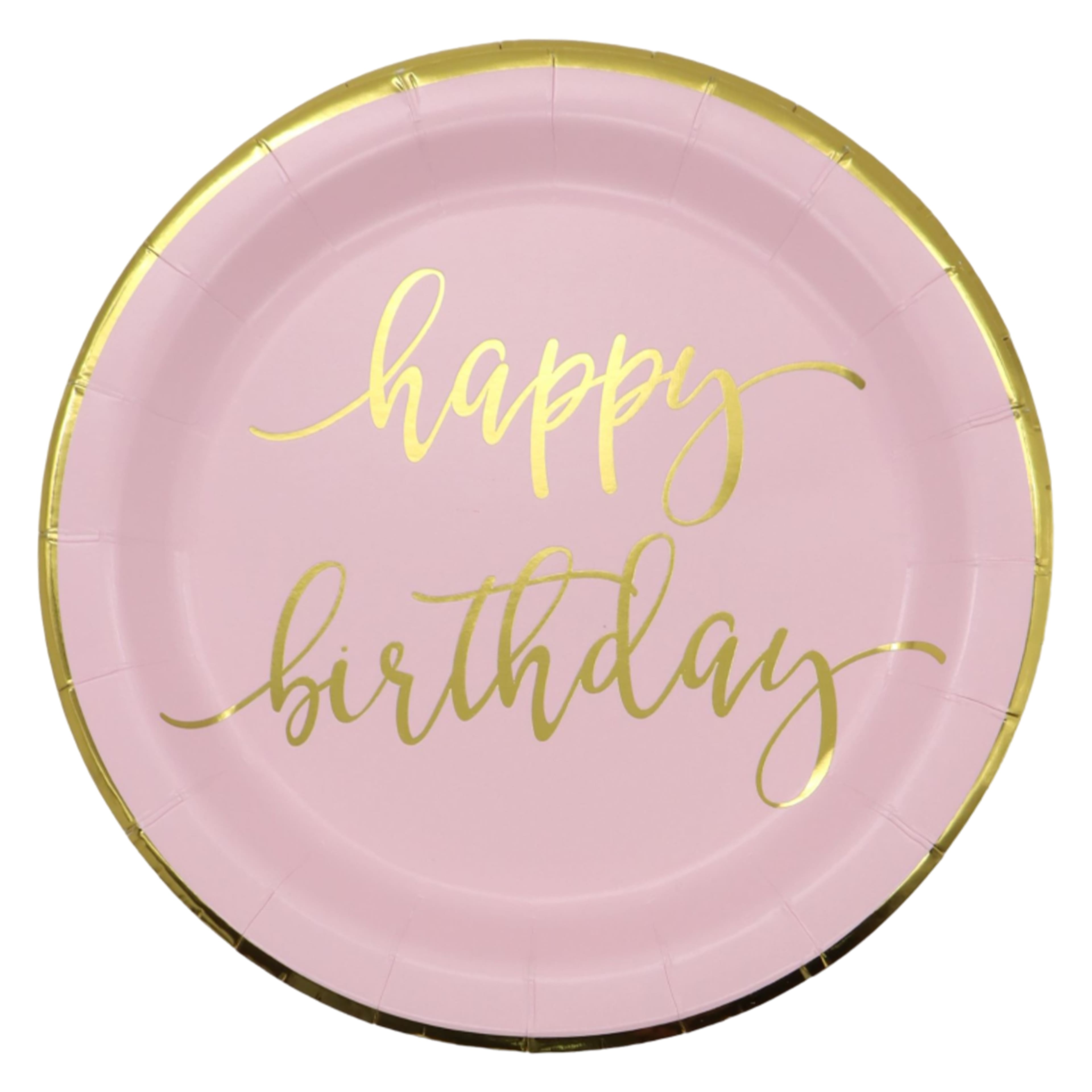 24 Packs: 8 ct. (192 total) 7" Pink & Gold Happy Birthday Snack Plates by Celebrate It™