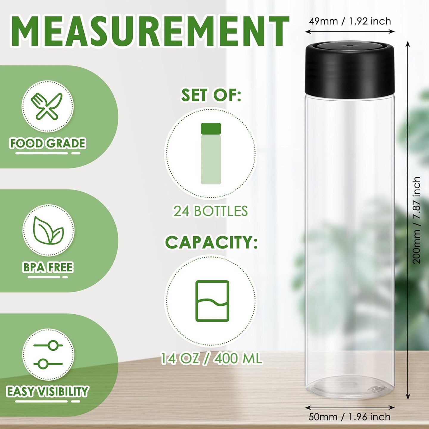 24 Pcs 13.5 oz 400 ml Plastic Juice Bottles with Caps (Clear)
