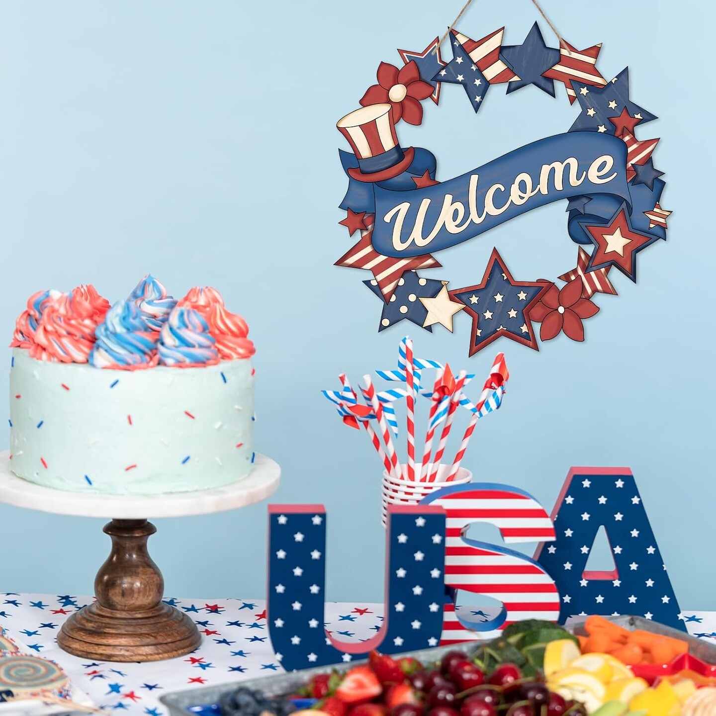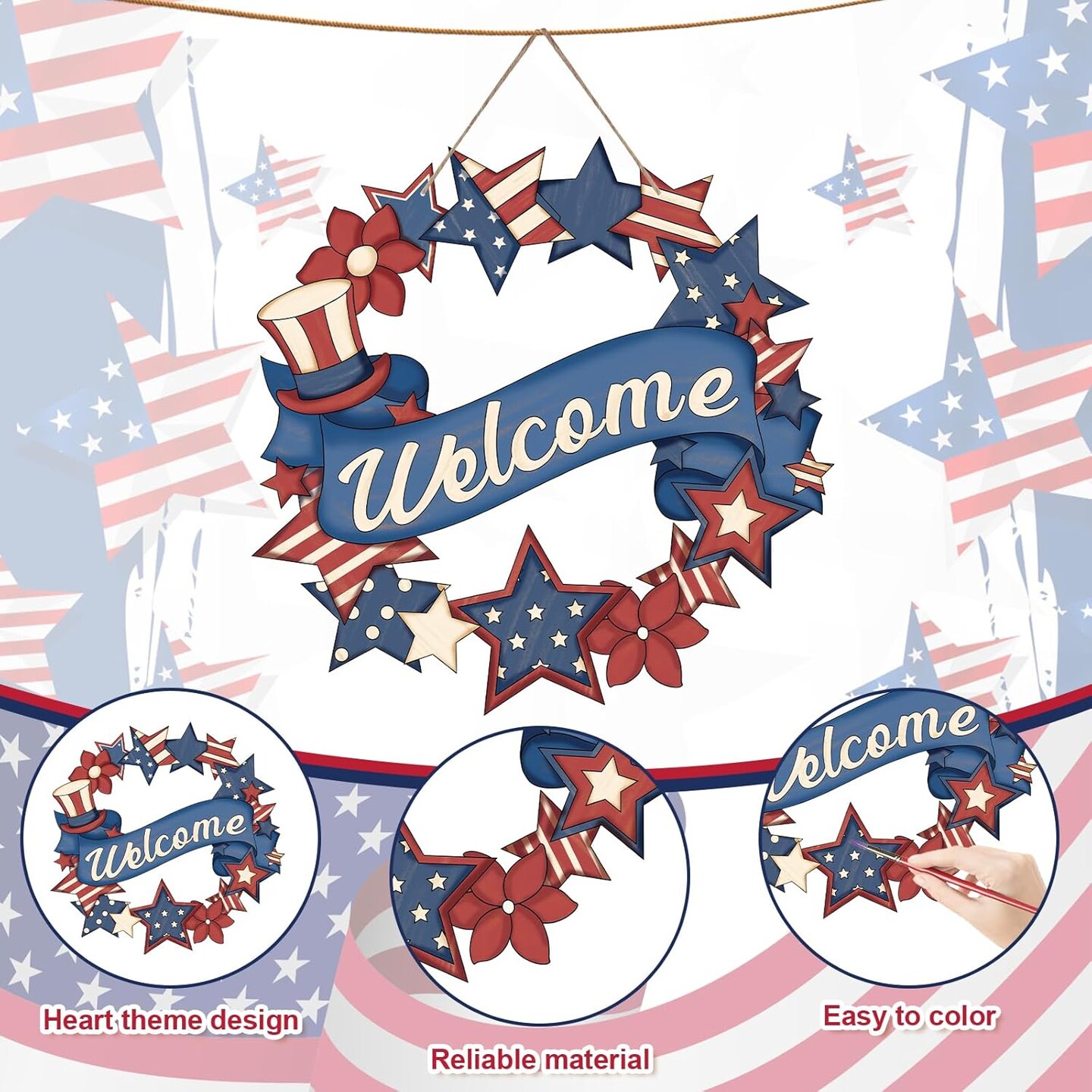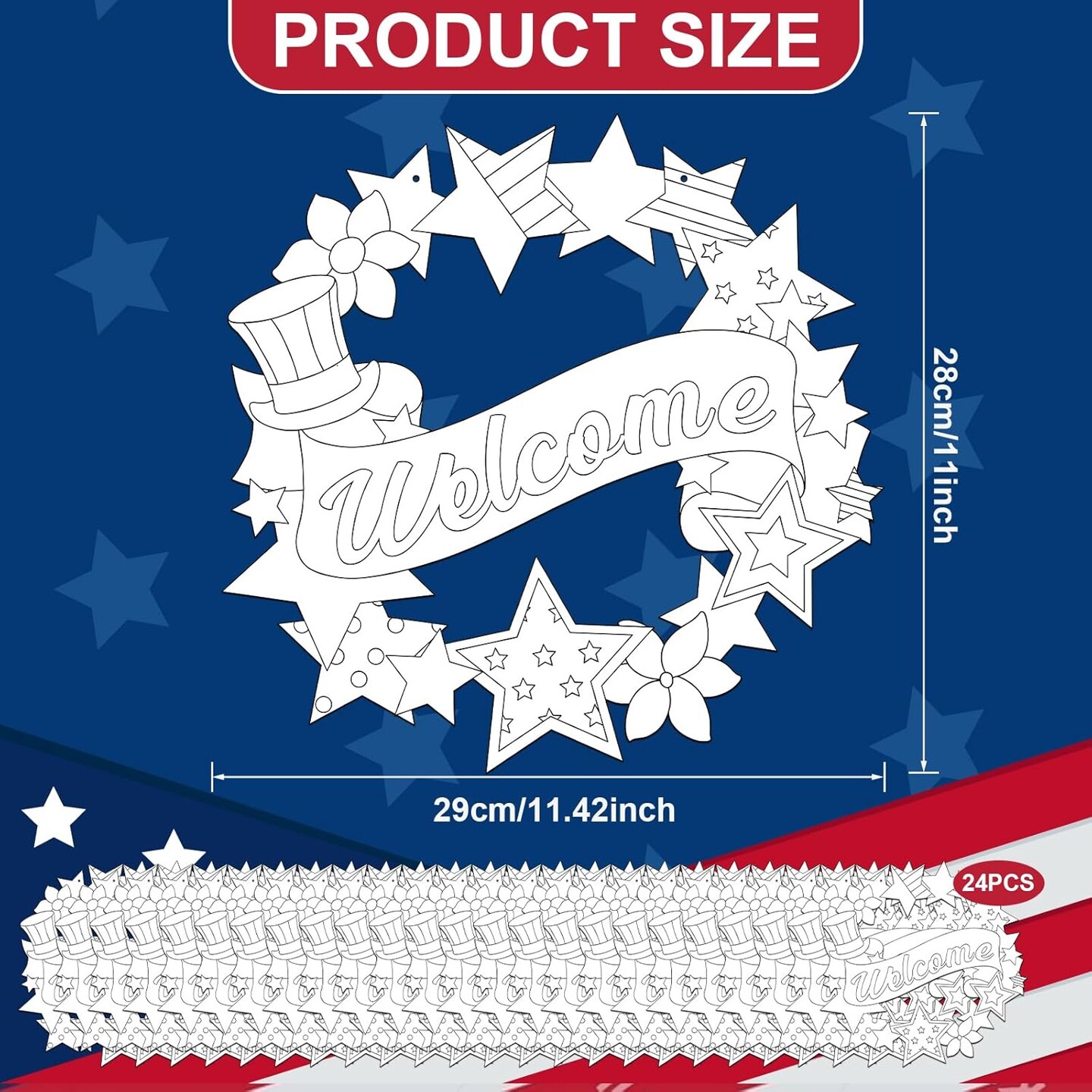 24 Pcs 4th of July Coloring Wreath Crafts for Kid, Color Your Own Star Crafts, DIY Paper Wreath for Classroom Activities Independence Day Games
