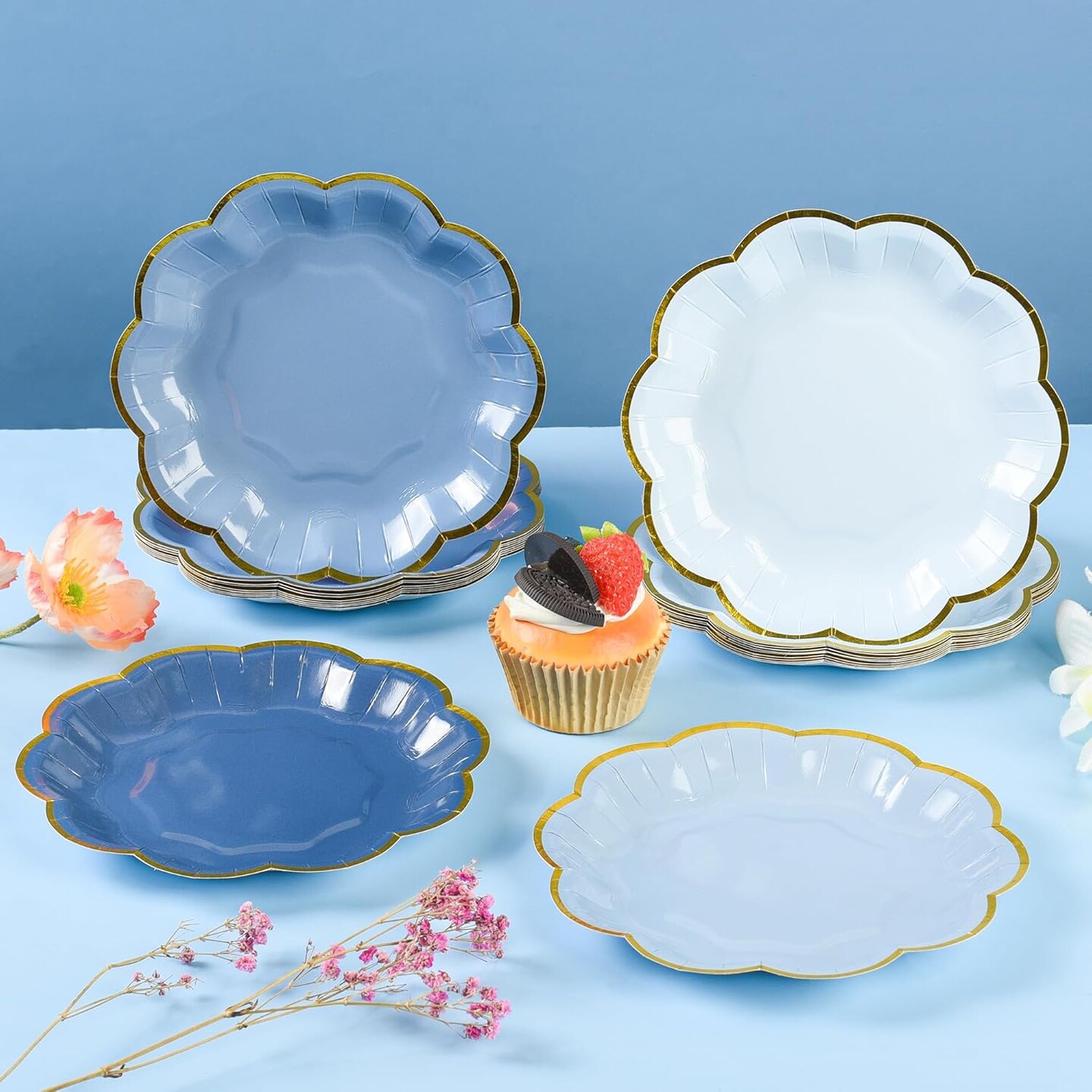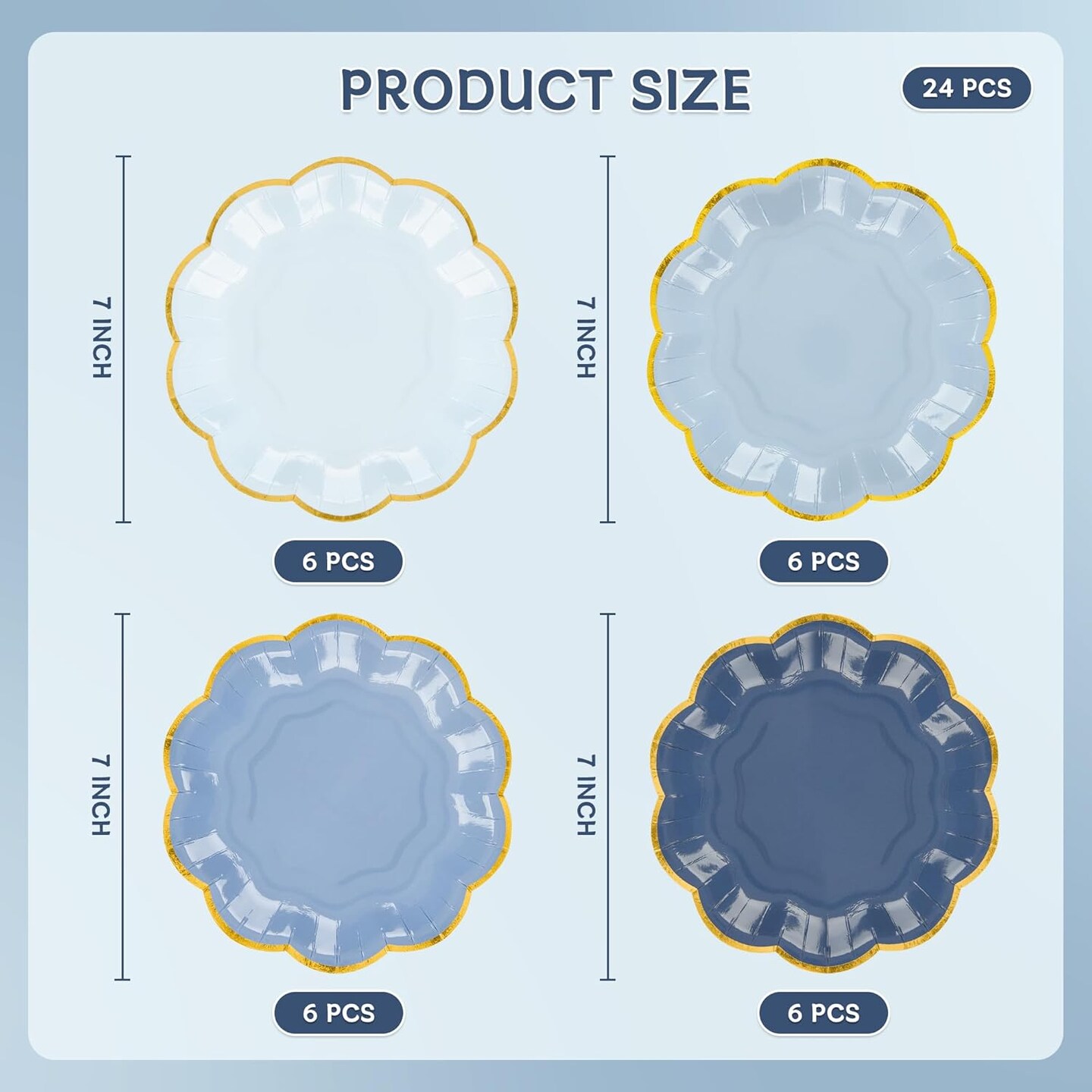 24 Pcs 7 Inch Dusty Blue Scalloped Edge Plates (Dusty Blue)