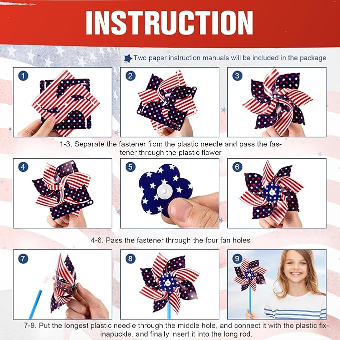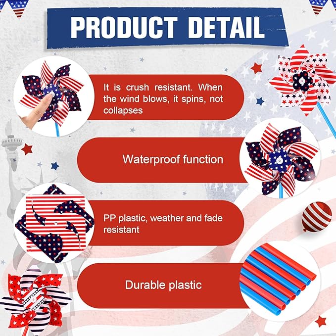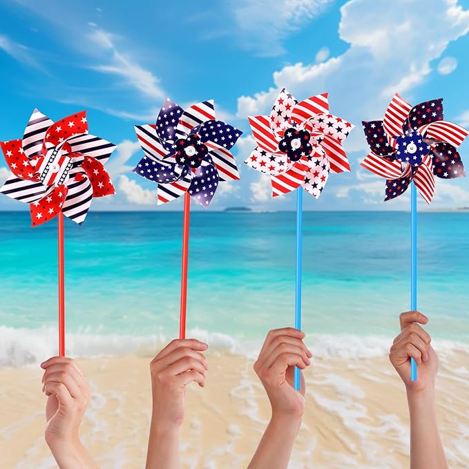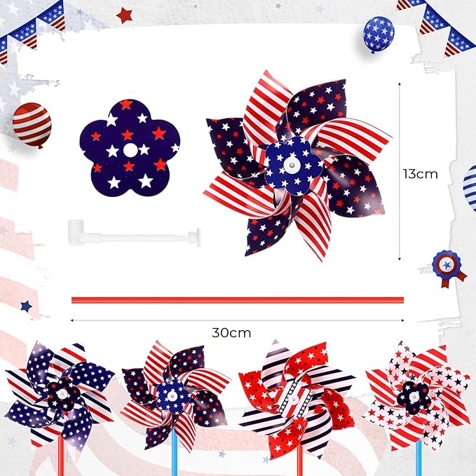 24 Pcs American Flag Patriotic Pinwheels 4th of July Pinwheels Red White and Blue Decorations Wind Spinners Outdoor Decor Windmills for Yard Garden, Independence Day Party Supplies