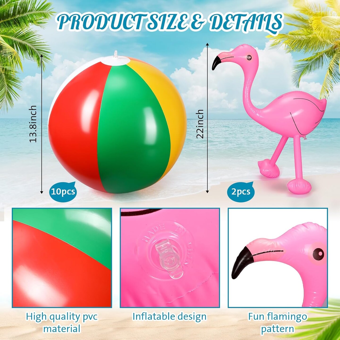 24 Pcs Beach Ball Party Kit 10 Pcs 16 Inch Beach Balls 12 Pcs Swimming Ring 2 Pcs Inflatable Flamingo Beach Ball Tower Rainbow Color Beach Balls for Summer Theme Party Decorations