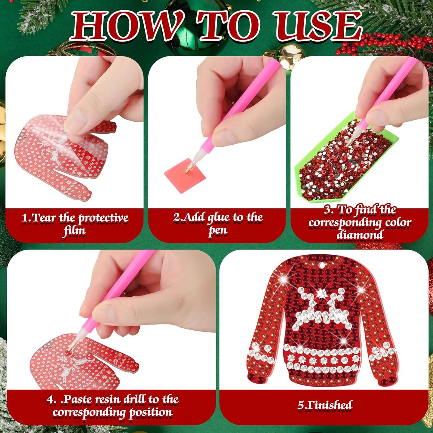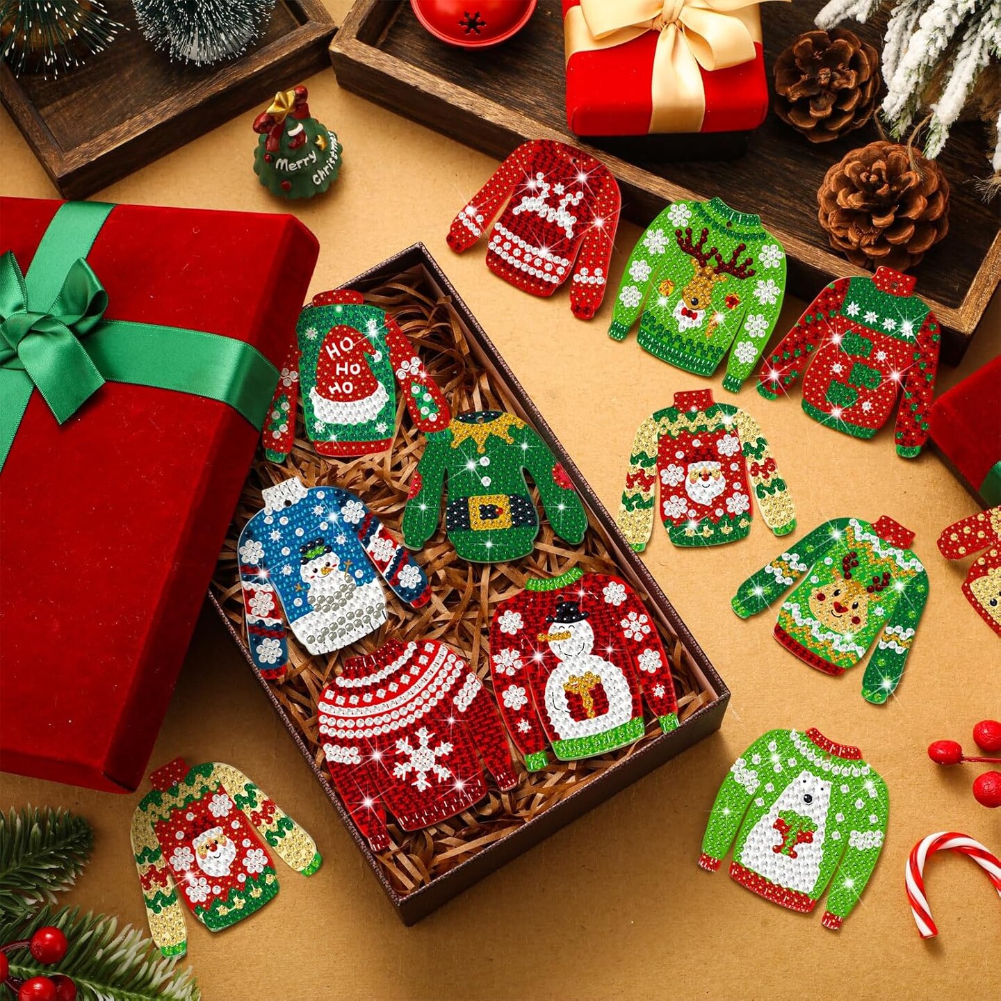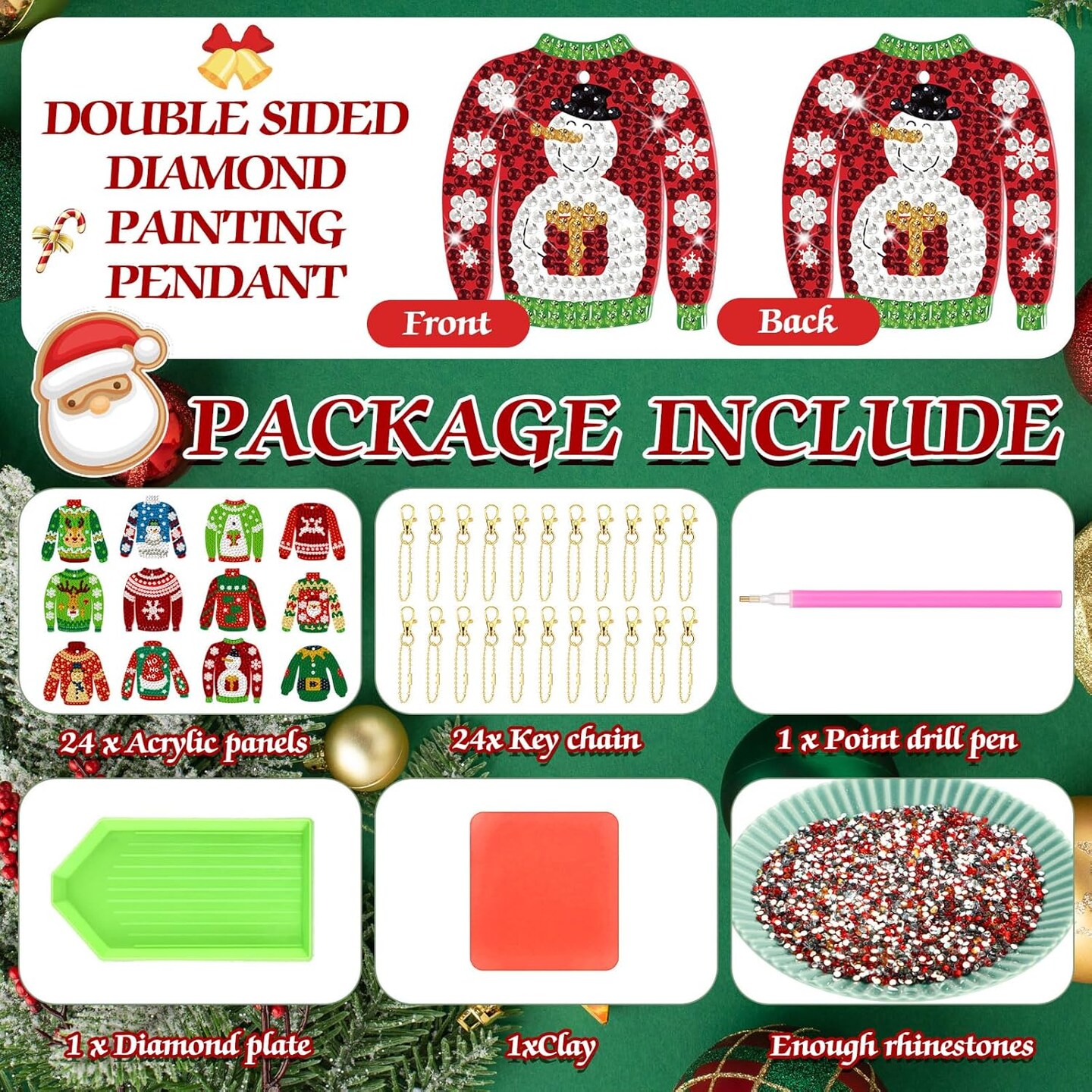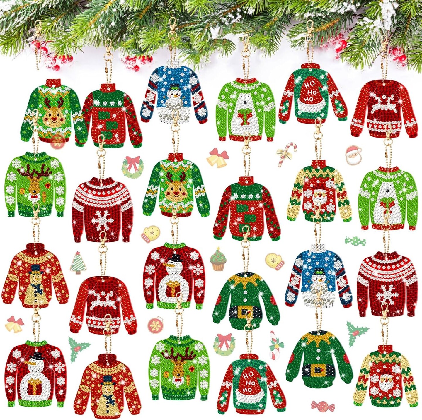 24 Pcs Christmas Sweater Diamond Painting Keychain Kit - Double Sided