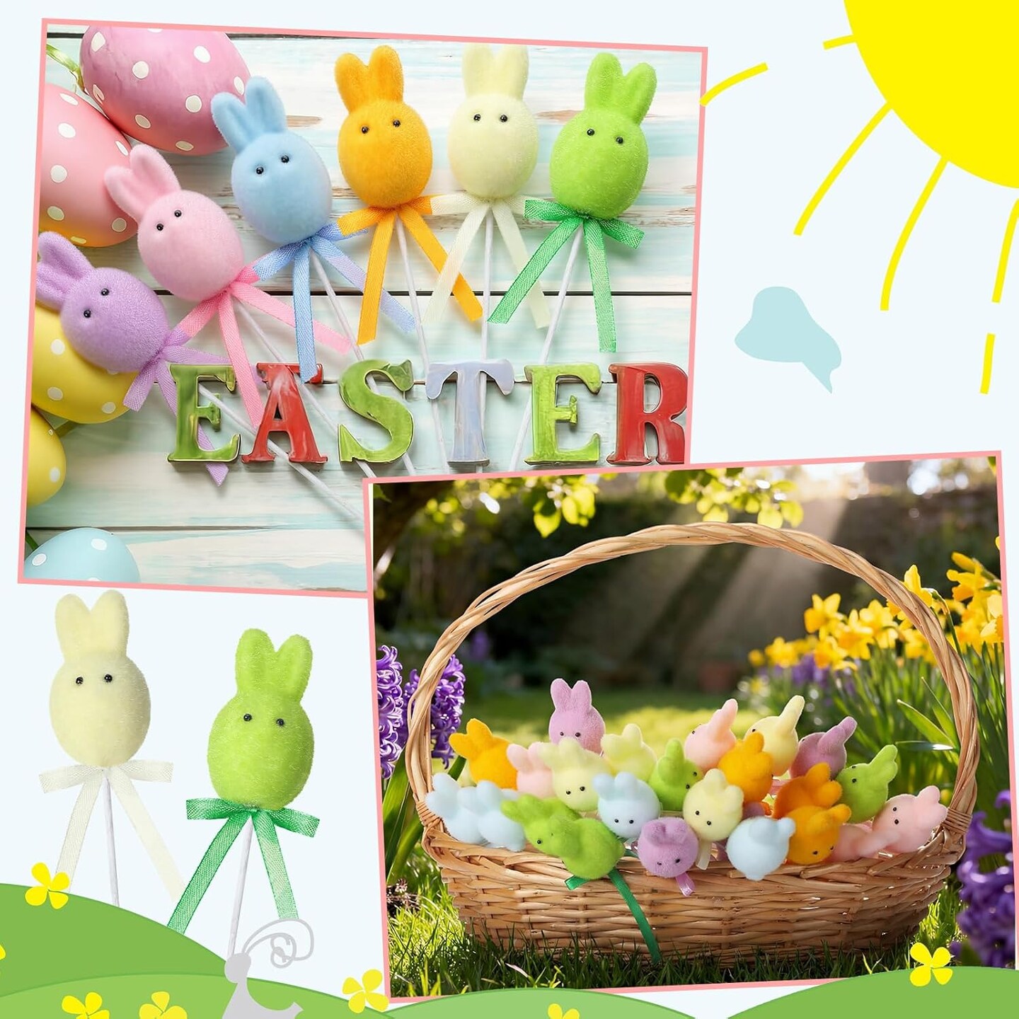 24 Pcs Easter Bunny & Pastel Egg Picks – 7" Faux Foam Stems for Spring Floral Arrangements, Easter Baskets, Centerpieces, Wreaths, and Party Decorations