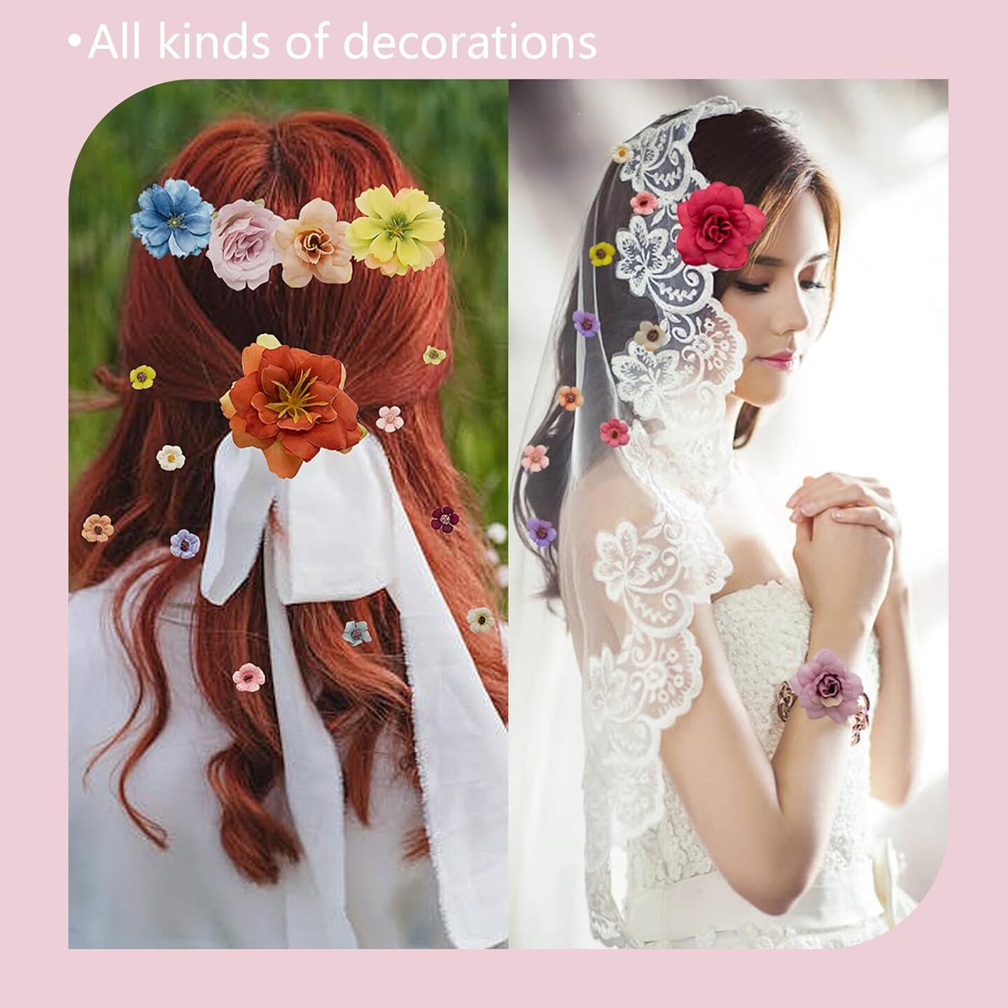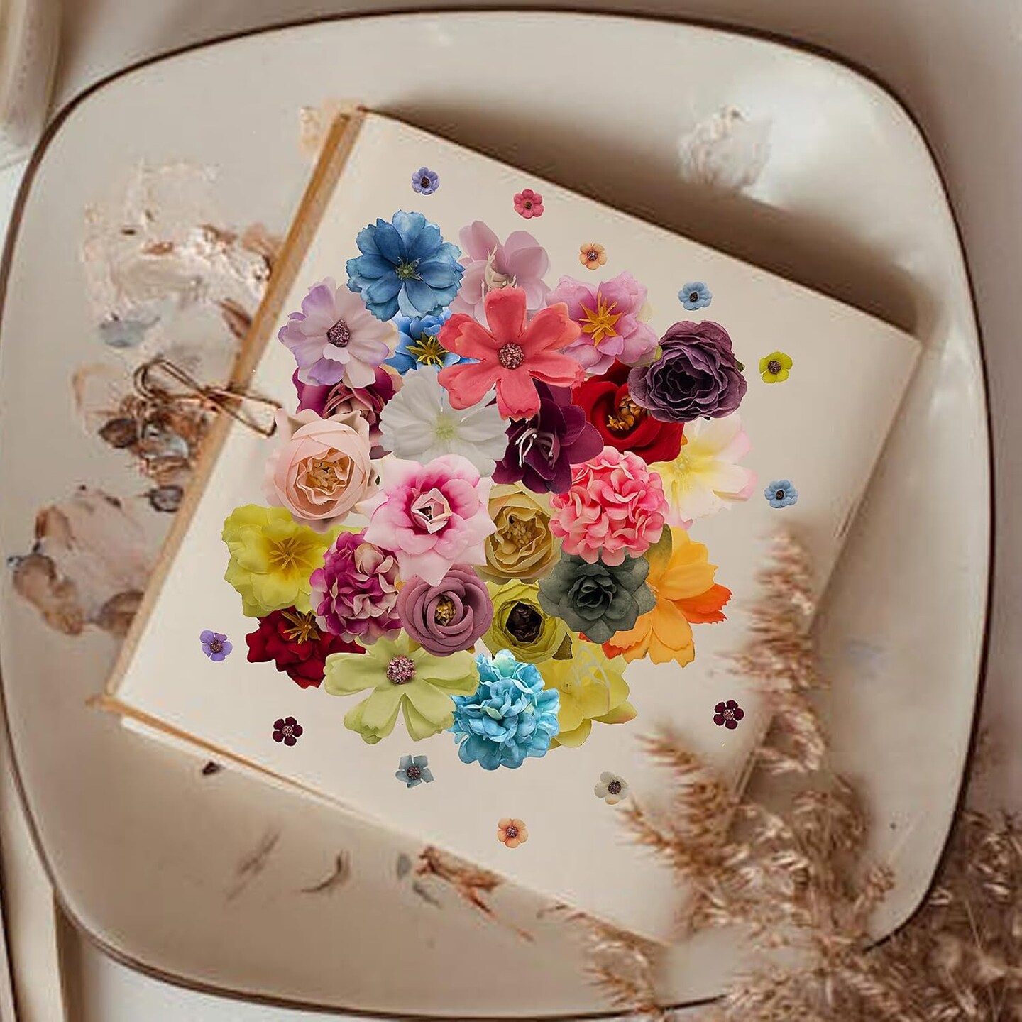 24 Pcs Faux Silk Flowers Heads Fake Rose Daisy Peony(Orange)