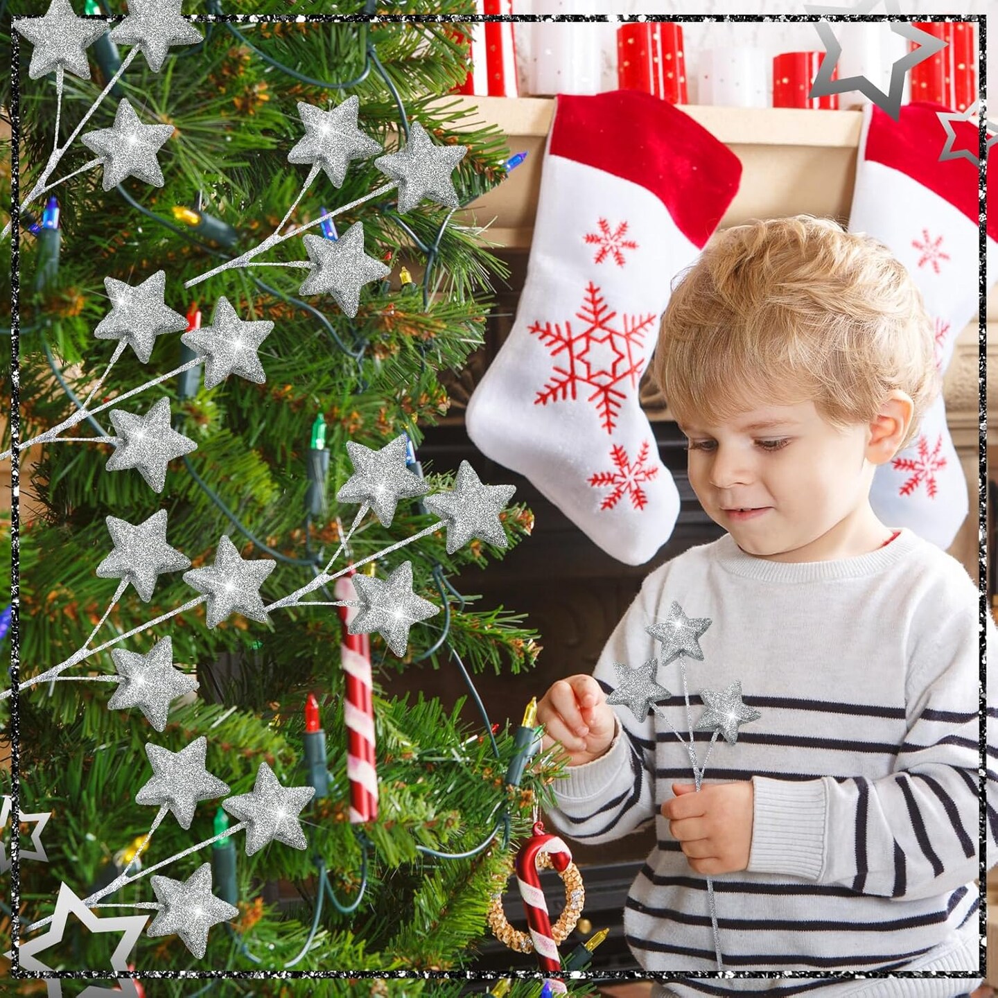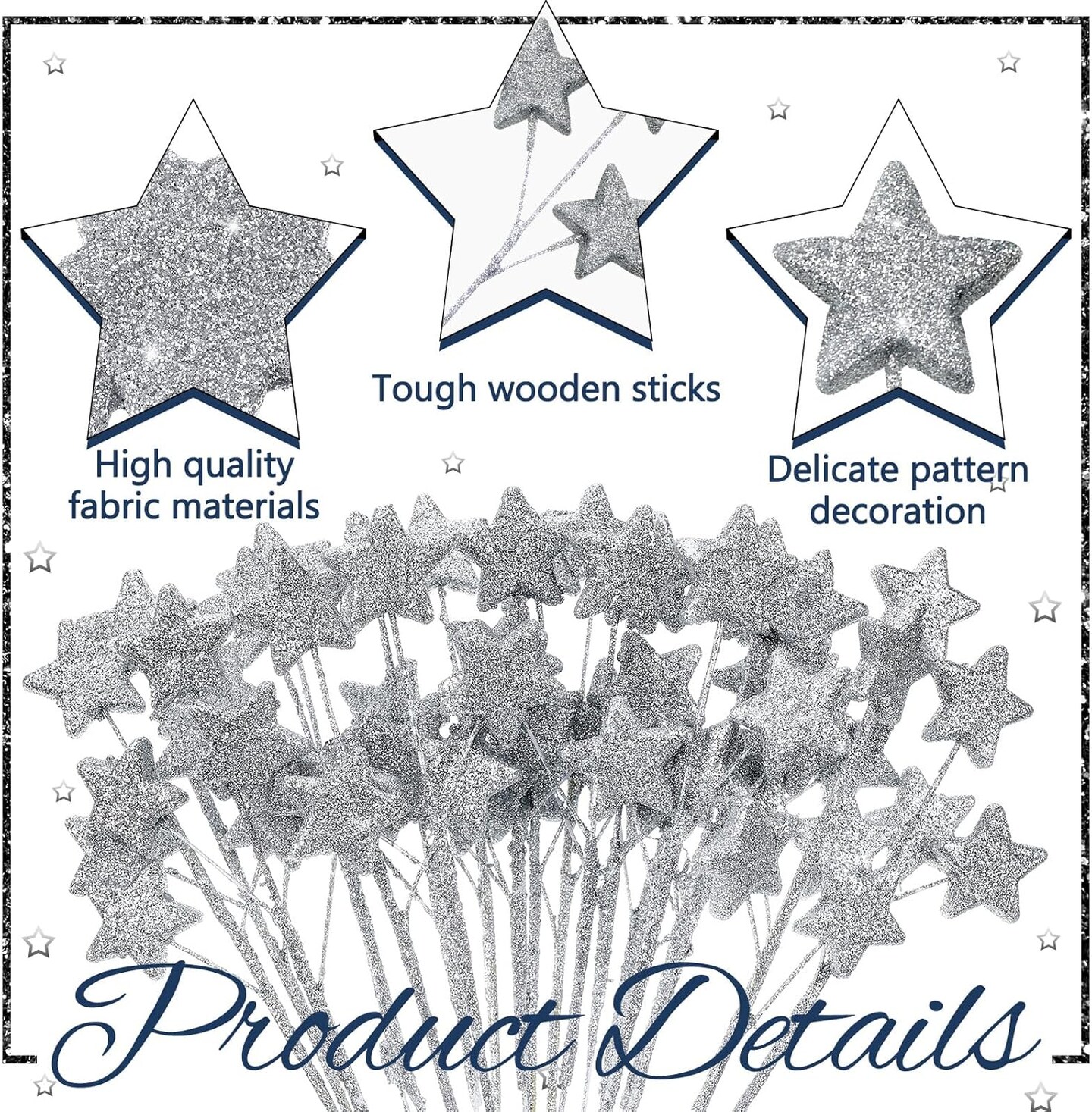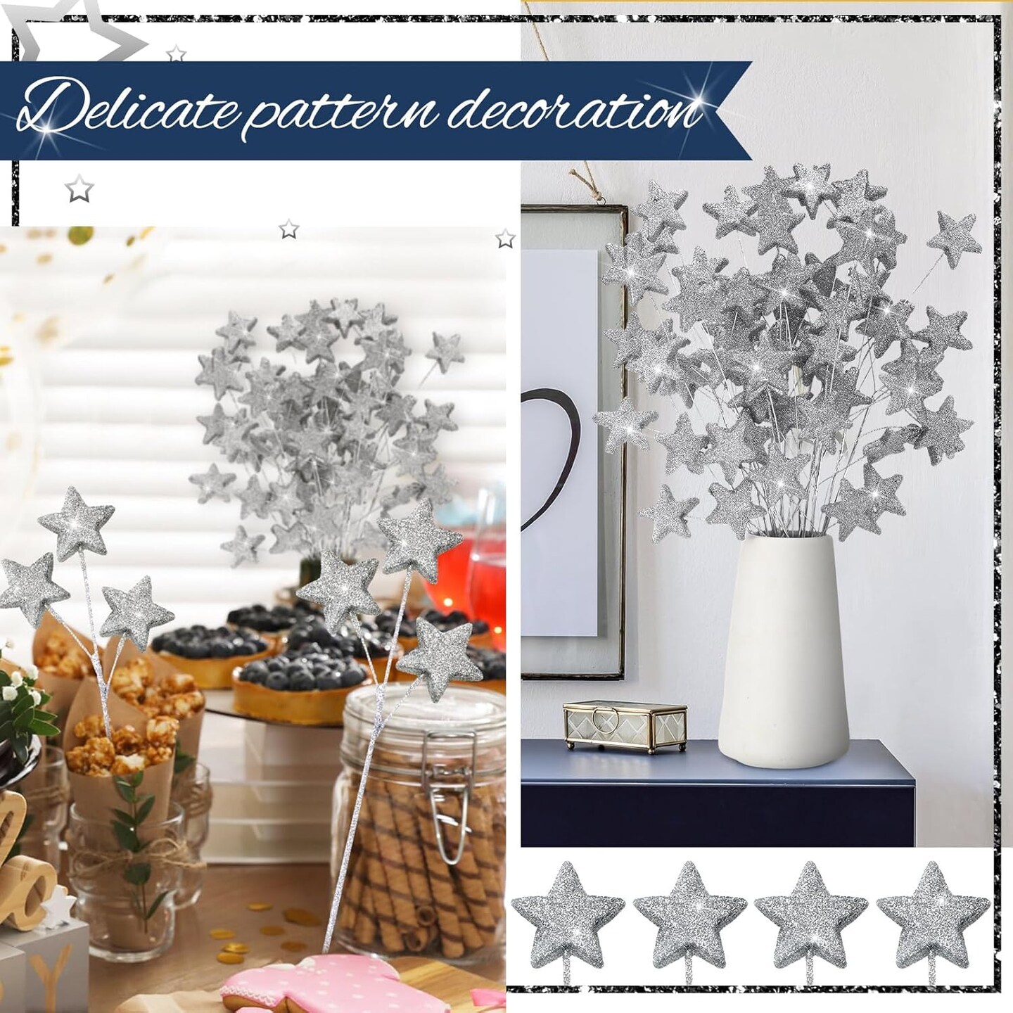 24 Pcs Glitter Star Picks 14.5 Inch Sparkly Star Stem Christmas Star Tree Picks Twinkle Star Sticks Foam Vase Decoration for Christmas Birthday Party Wedding Centerpieces