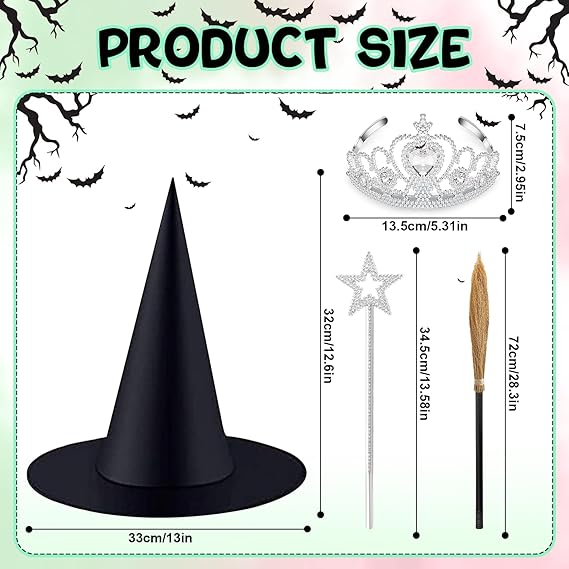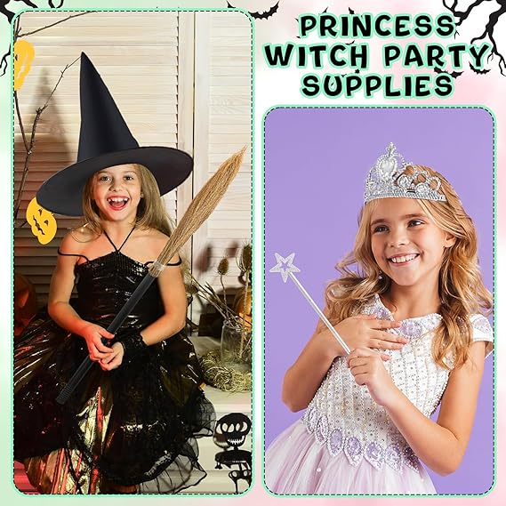 24 Pcs Halloween Decorations - Witch Hats, Glitter Star Wands, Princess Crowns Set