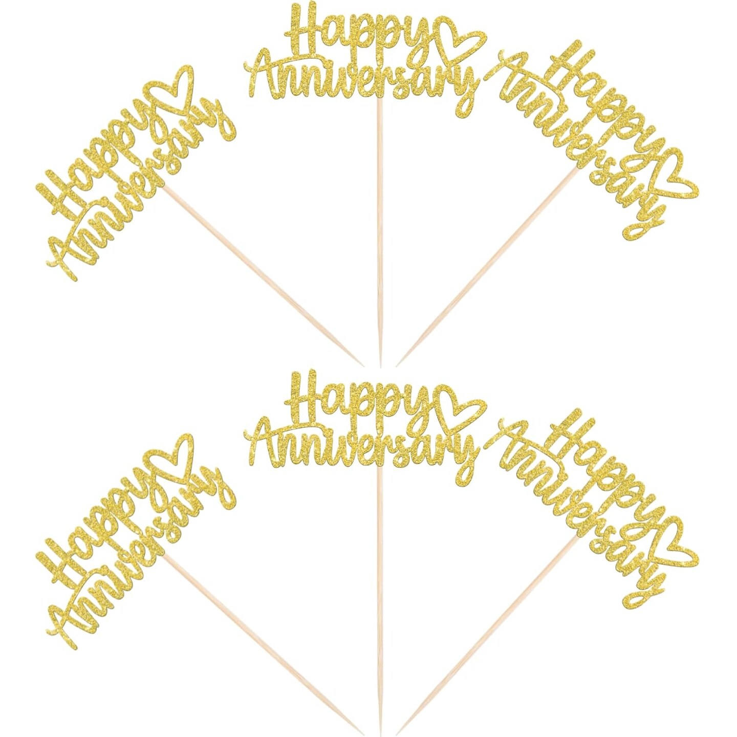24 PCS Happy Anniversary Cupcake Toppers (Gold) 2.6"W x 4.1"H