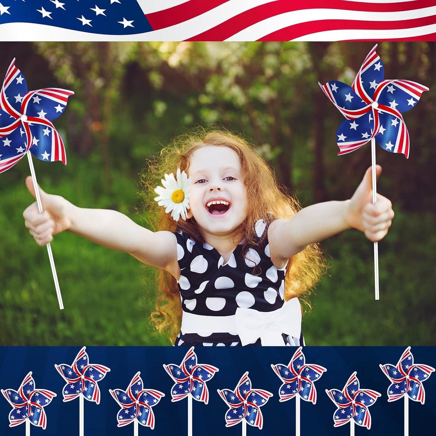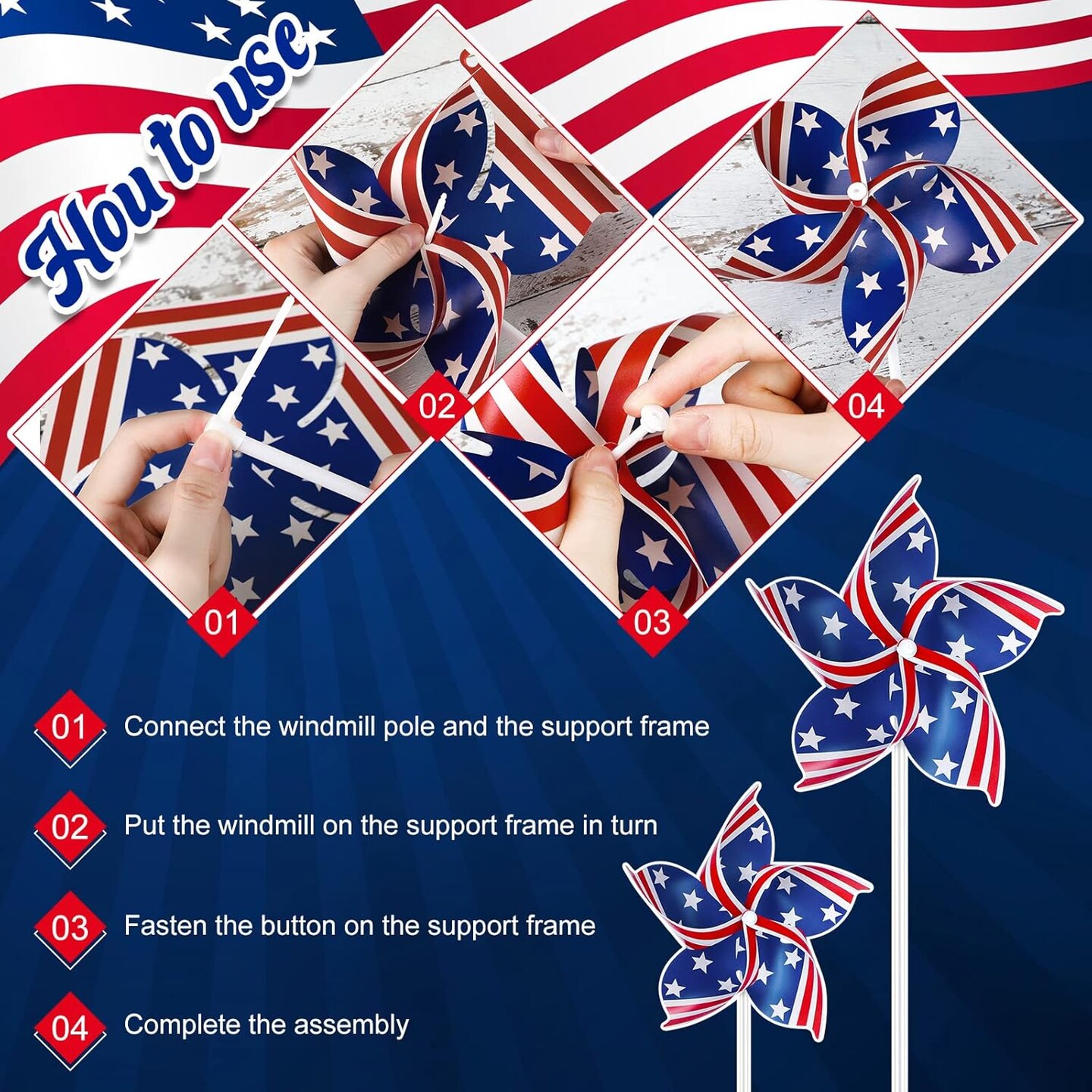 24 Pcs Patriotic Pinwheels 4th of July Pinwheels Independence Day Pinwheels Windmill Decorations