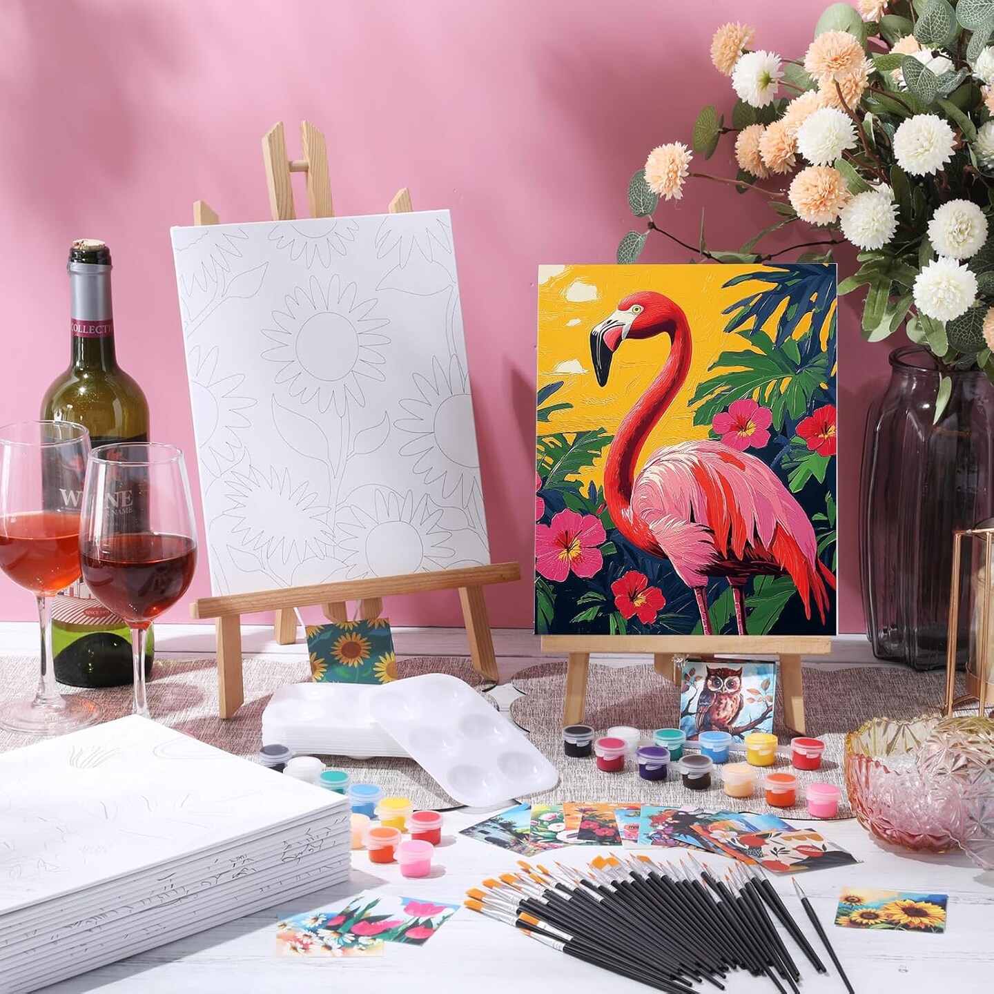 24 Pcs Pre Drawn Canvas for Painting Adult Pre Printed Canvas Bulk Sip and Paint Kit Stretched Panels Paint Set for Theme Valentine Painting Night Party Favor(Mixture,8 x 10 Inch)