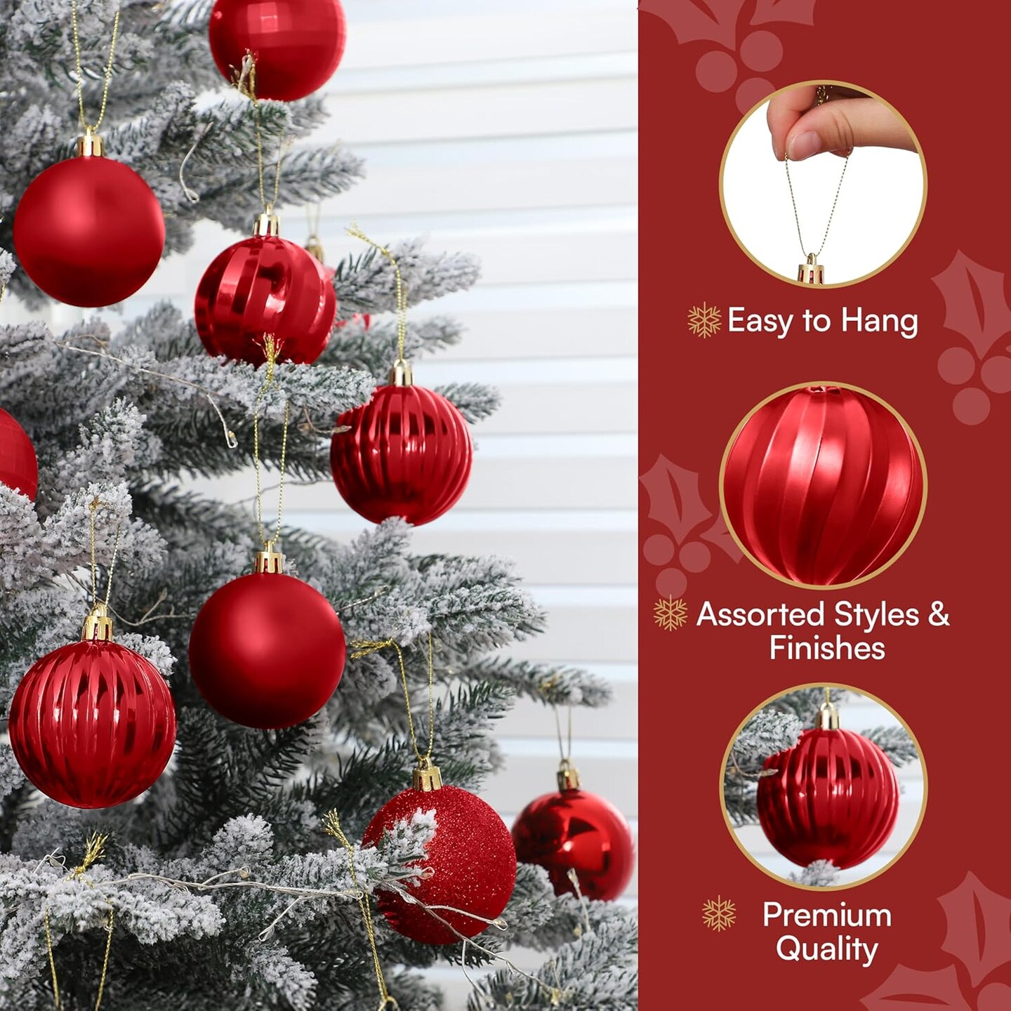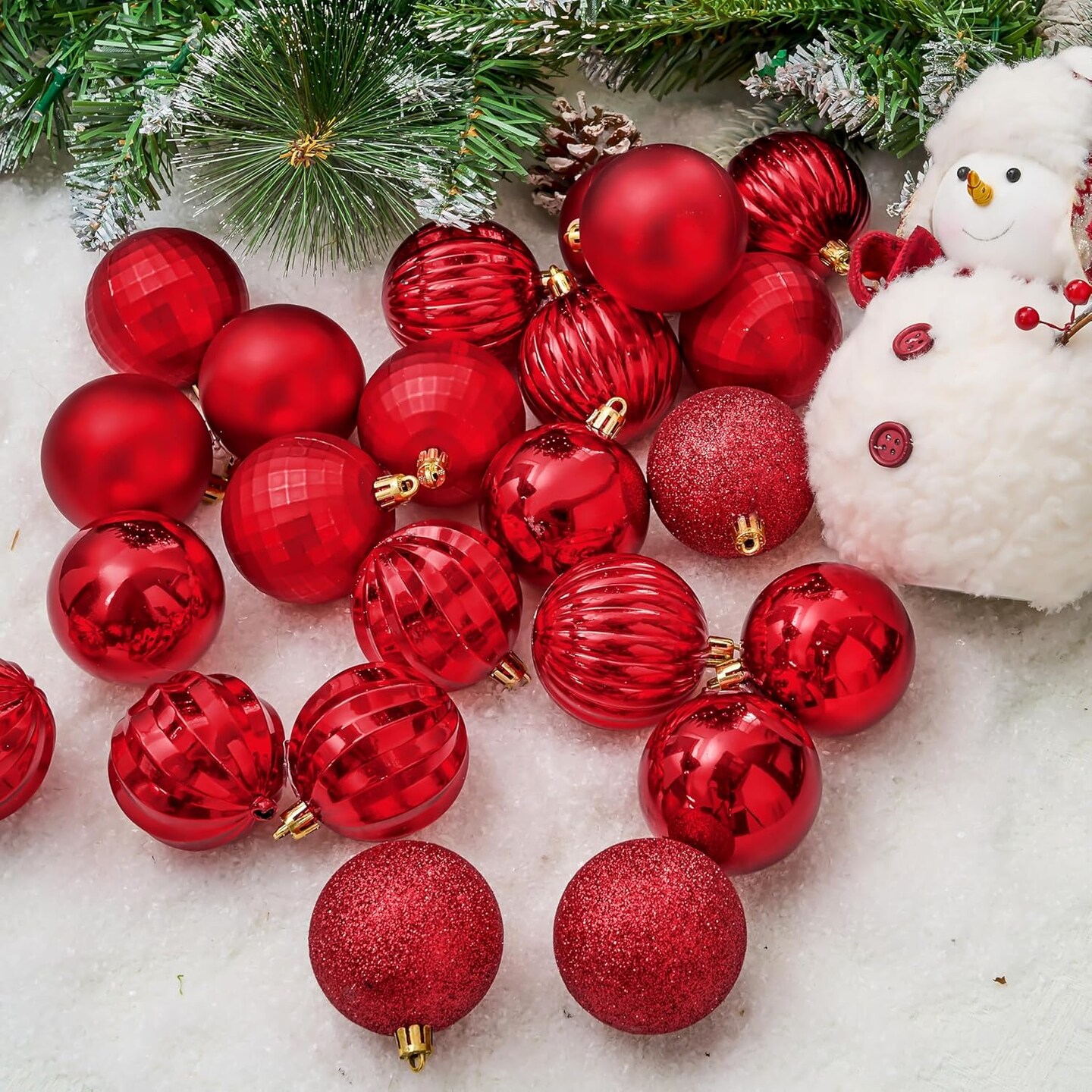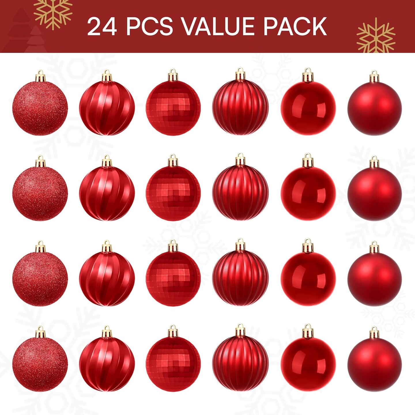 24 Pcs Red Christmas Balls Ornaments Set