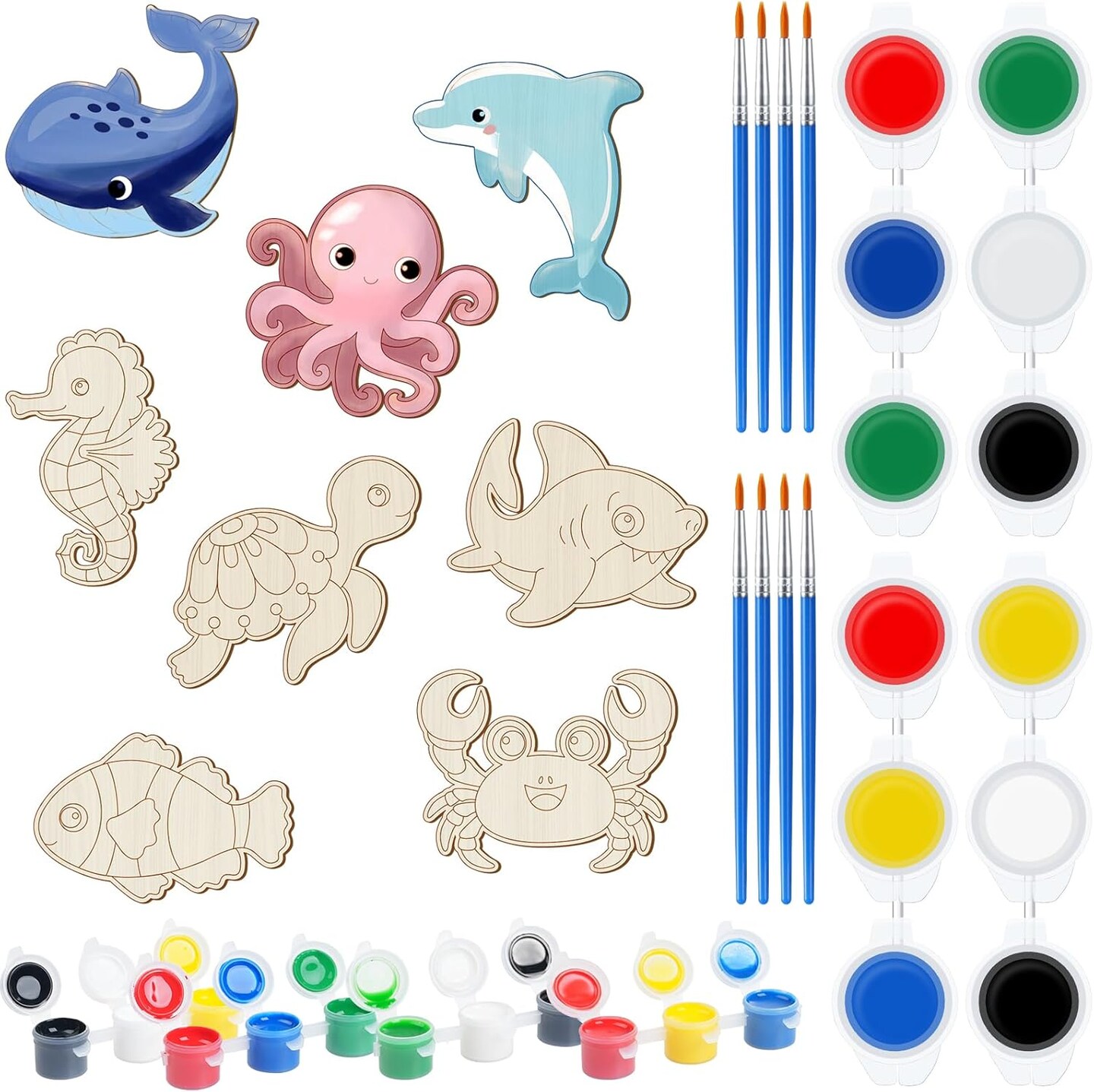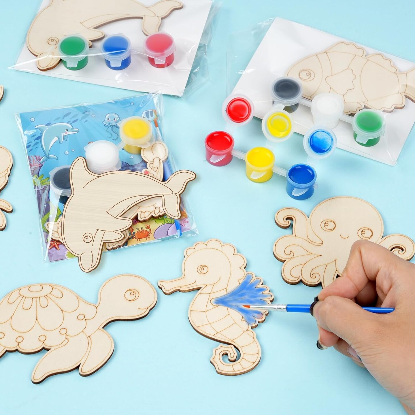24 Pcs Unfinished Wood Crafts Ocean Animal Cutouts Decorations