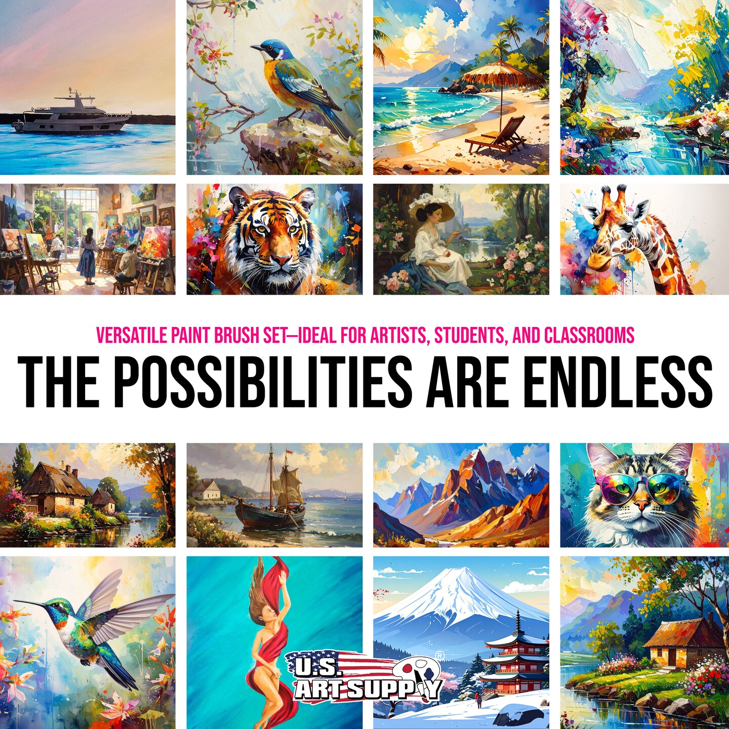 24 Piece Oil & Acrylic Paint Long Handle Artist Paint Brush Set with Canvas Carrying Case