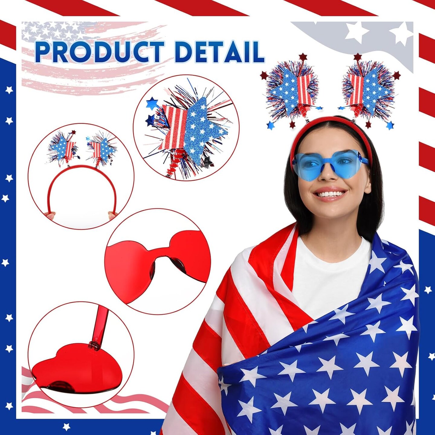 24 Pieces 4th of July Patriotic Headbands and Glasses Set (Stylish Style)