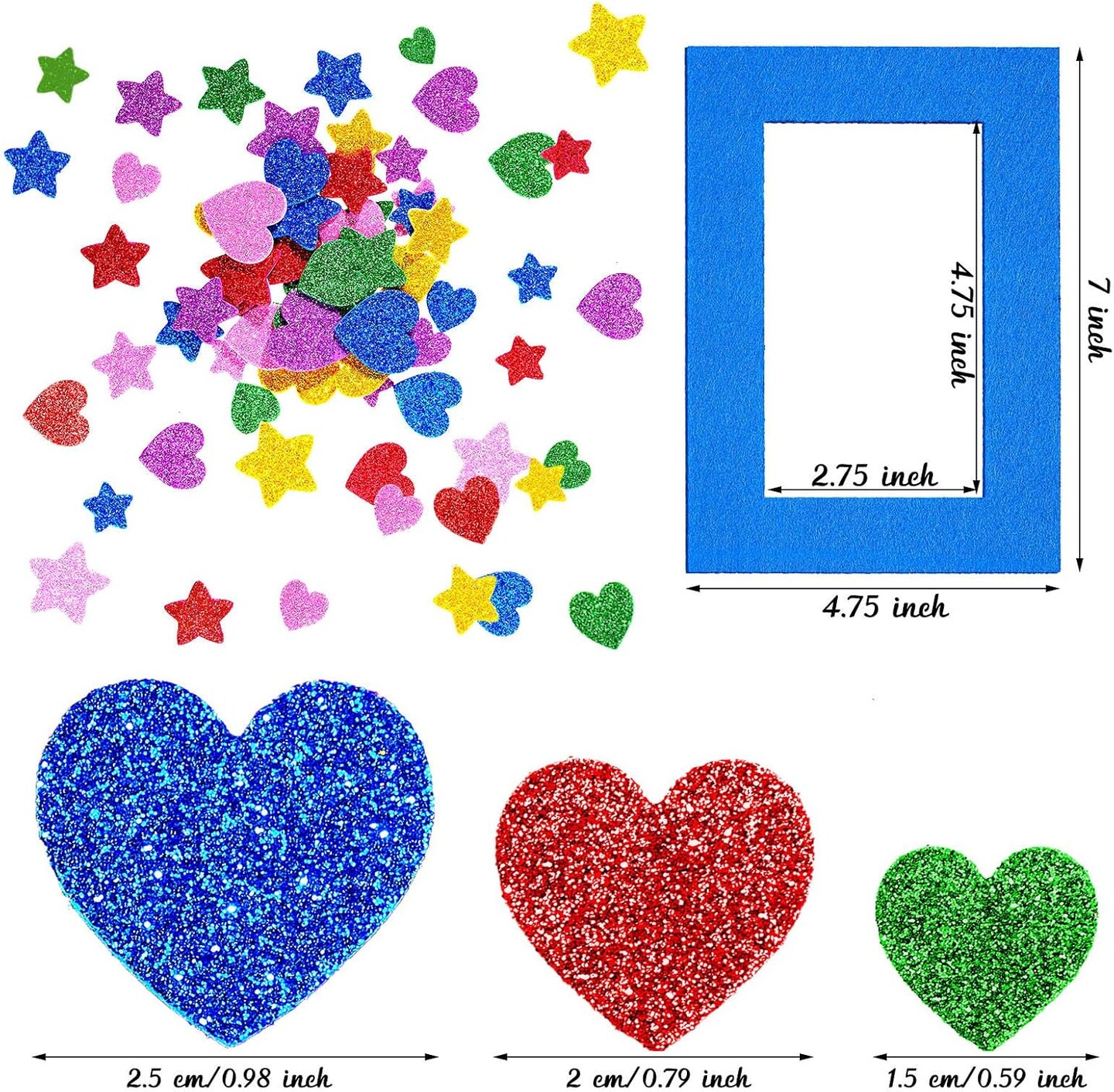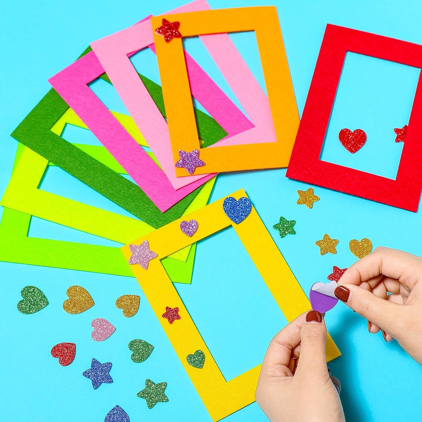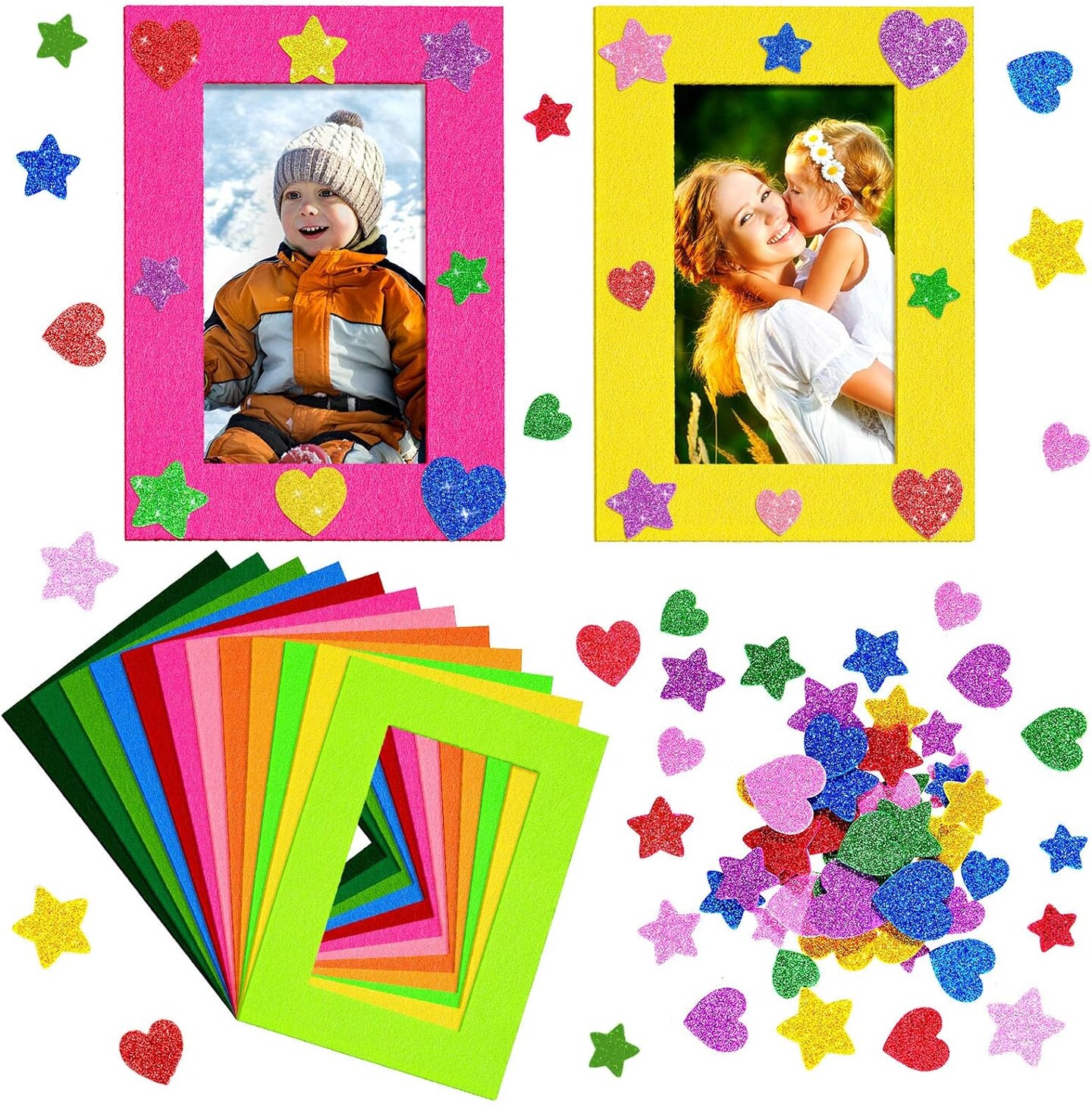 24 Pieces Colorful Felt Photo Frames Holiday Picture Frames and 50 Pieces Colorful Glitter Foam Stickers for Home and Office Decoration,12 Colors, 4 x 6 Photos(4.7 x 2.8 Inch,Simple Colors)