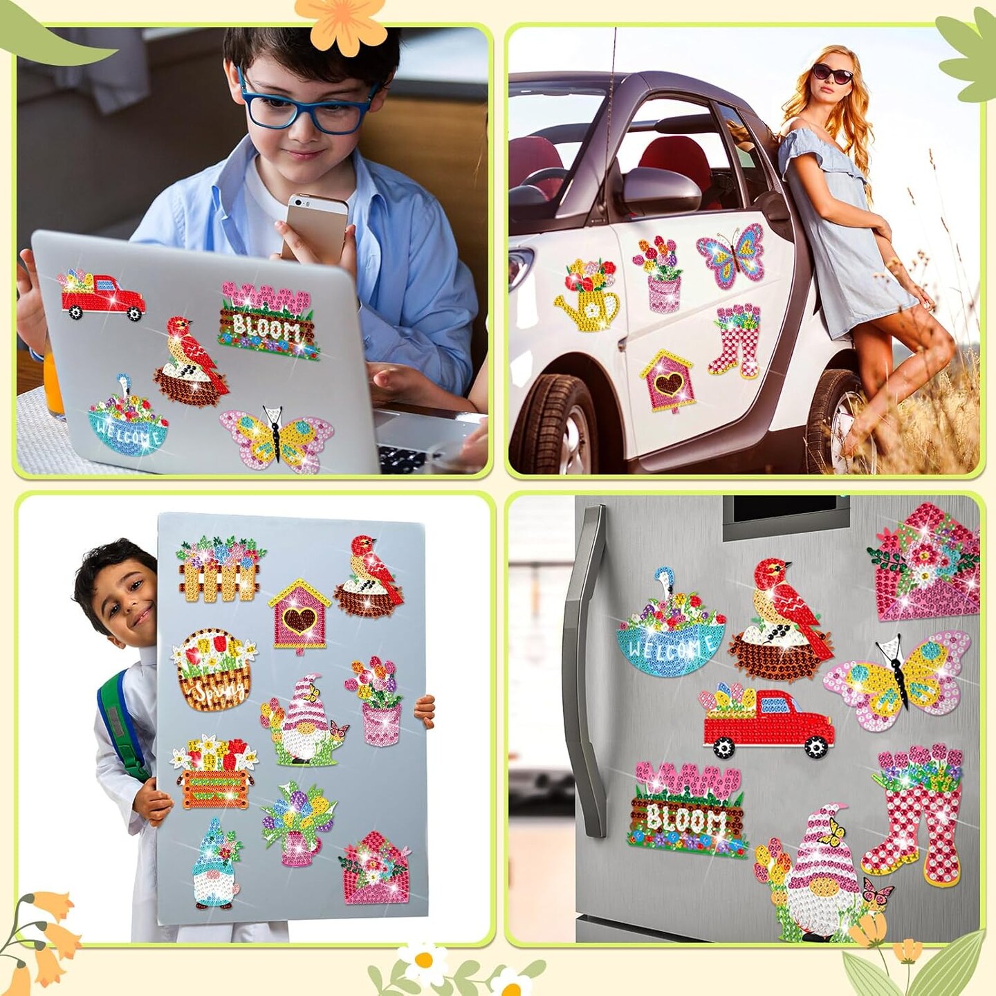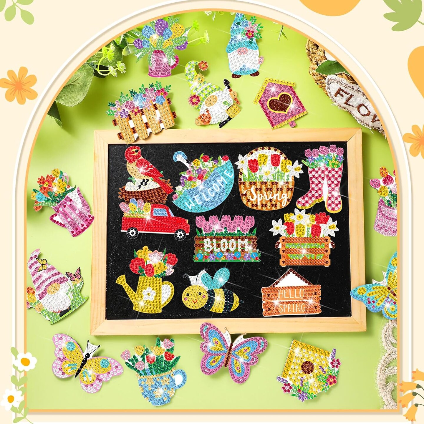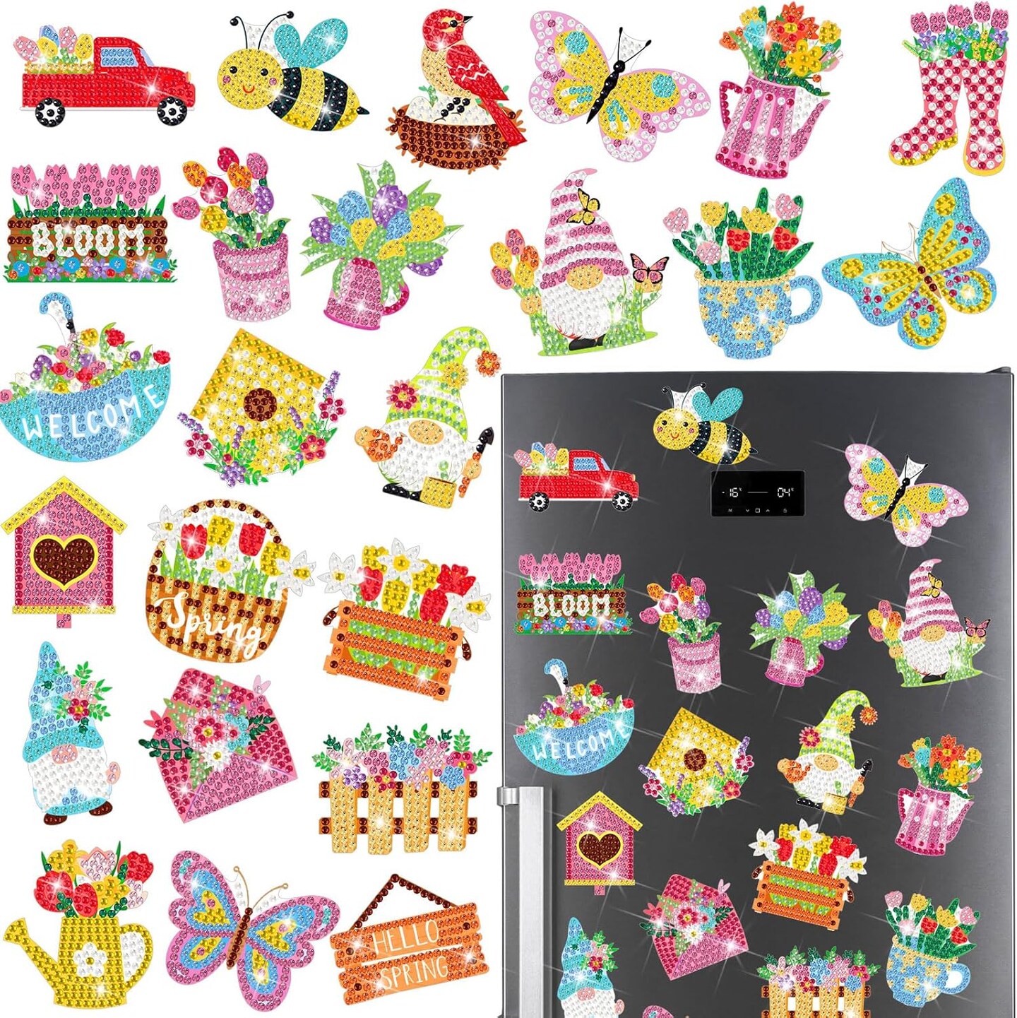 24 Pieces Spring Easter Diamond Magnetic Painting Art