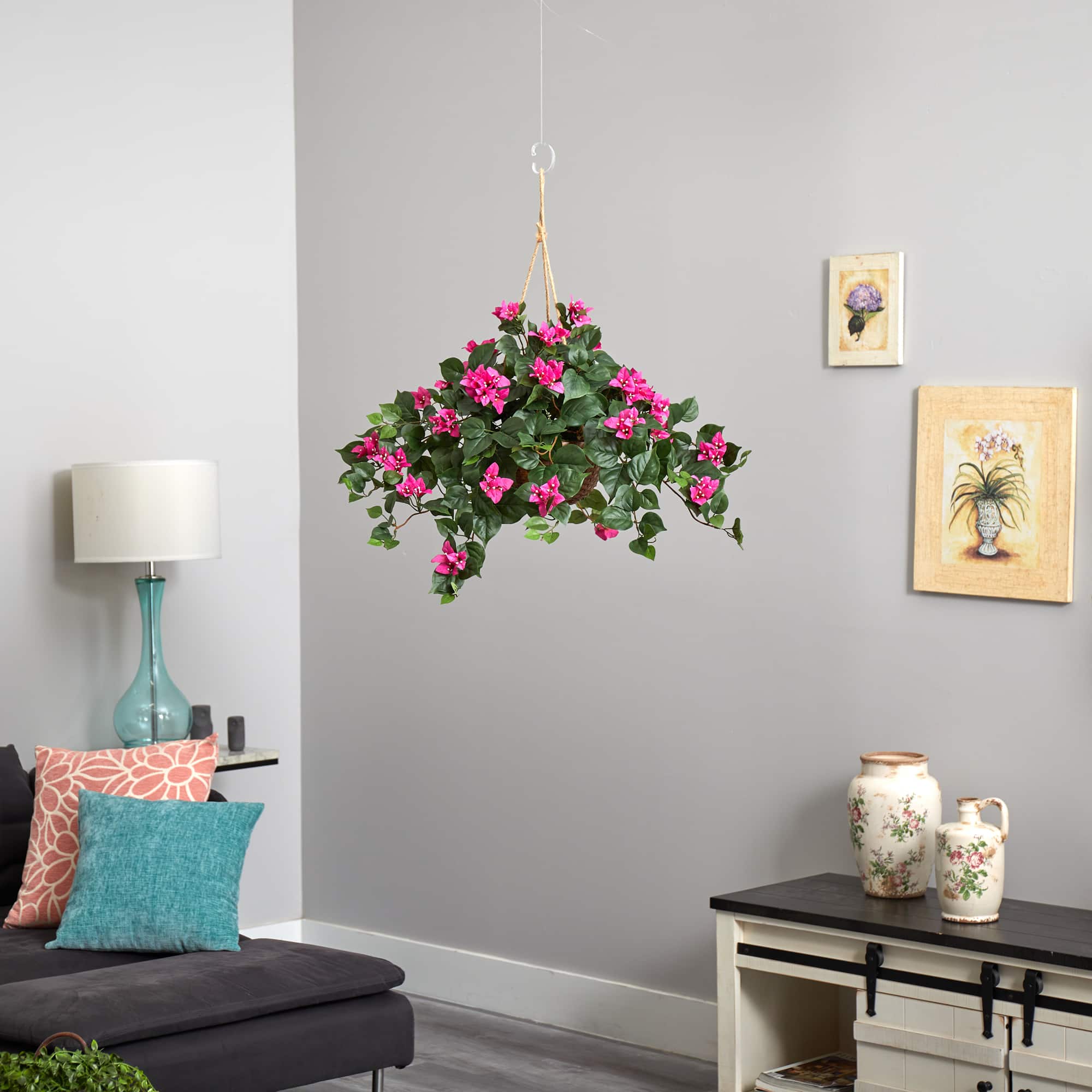 24" Pink Bougainvillea Hanging Basket