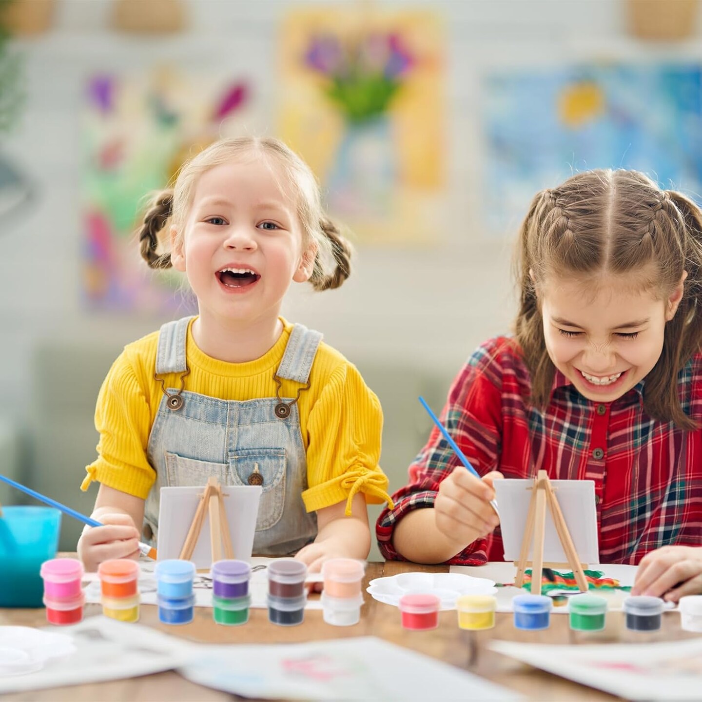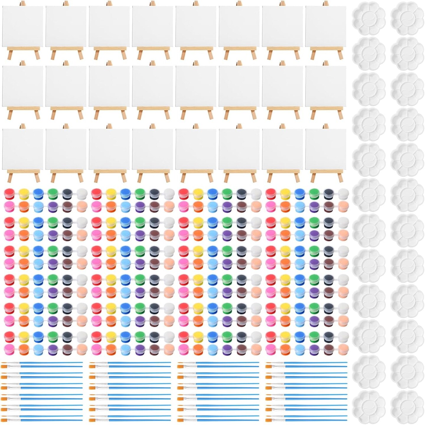 24 Set 4 x 4 Inch Mini Canvas Panels and Easel Painting Kit, 12 Colors Acrylic Strips