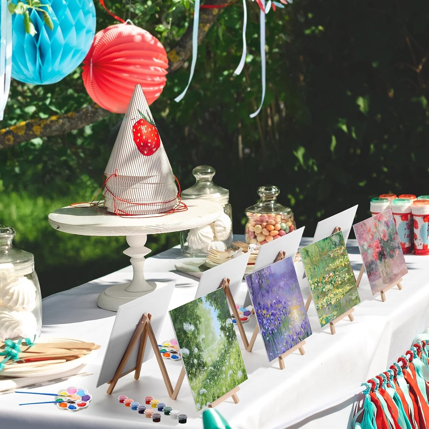 24 Set 8 x 8 Inch Canvas Boards and Easel for Painting, Acrylic Paint Strips, Palettes, Brushes, Canvases Painting Kits for Kids Adults Artists Beginners Oil Acrylic Painting Party Favors