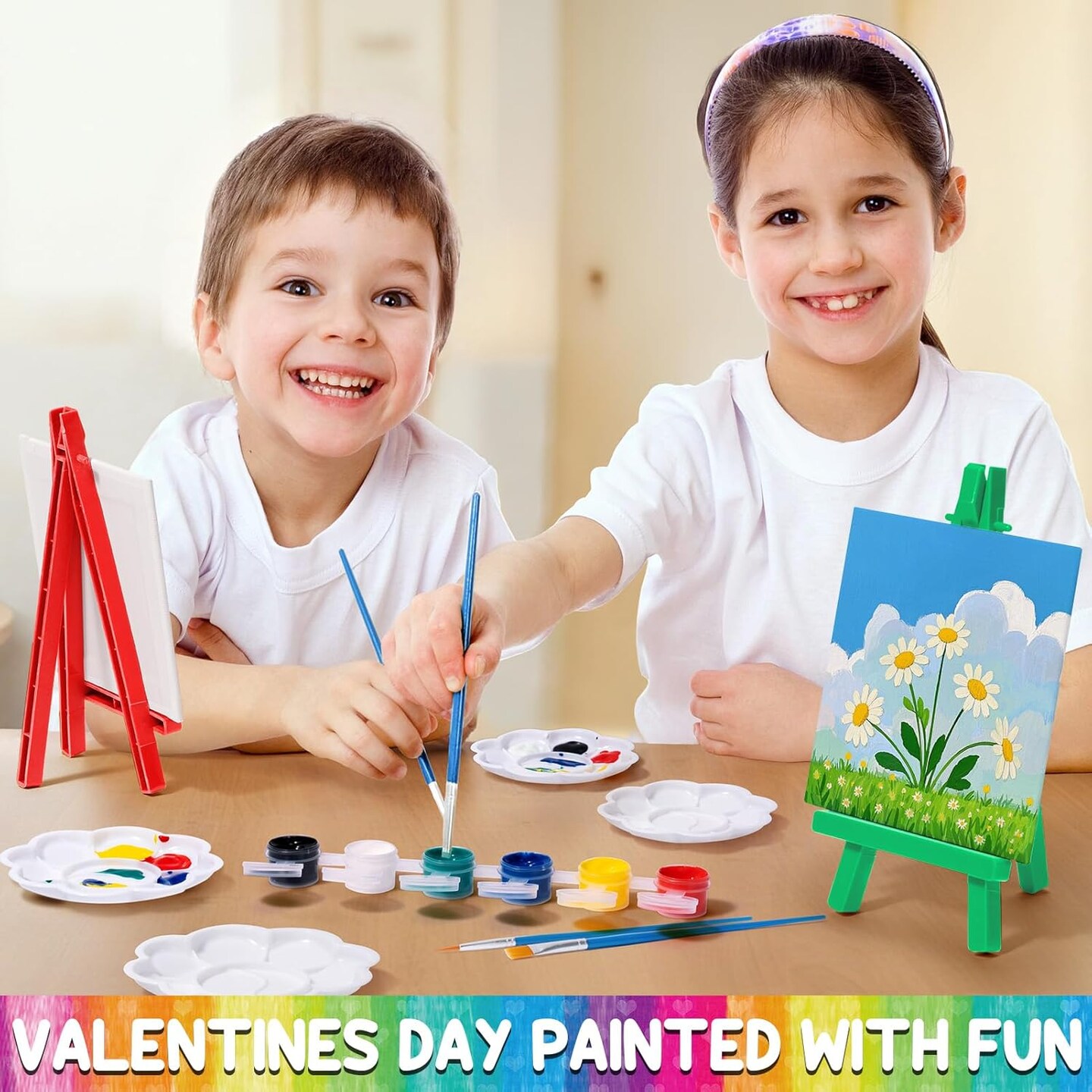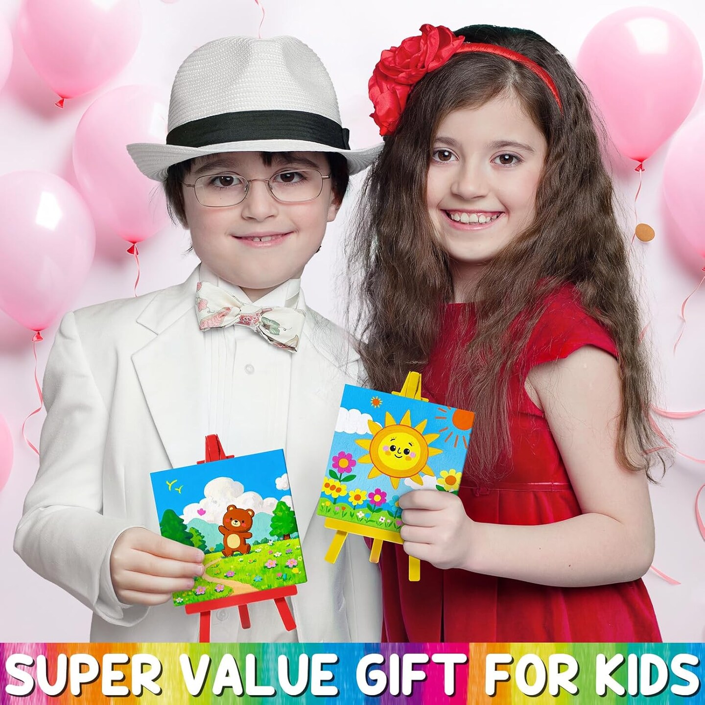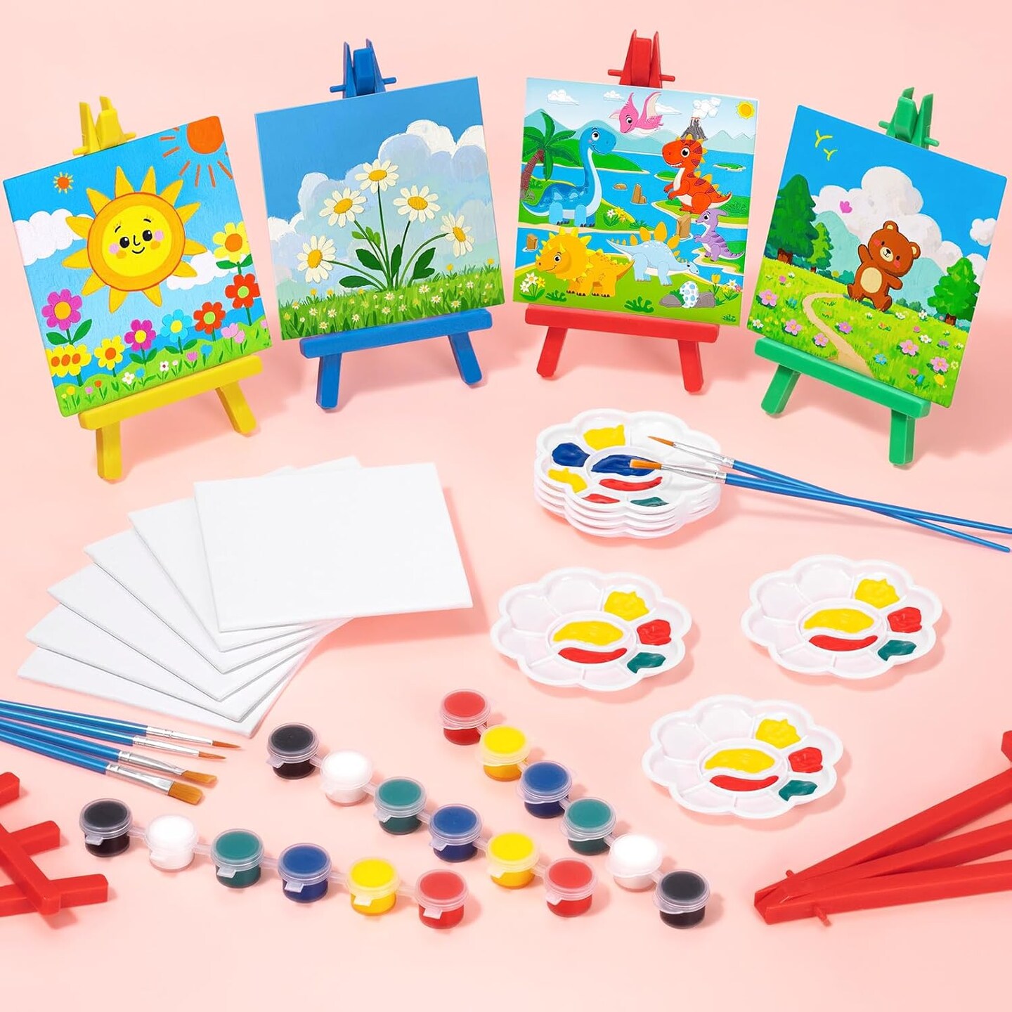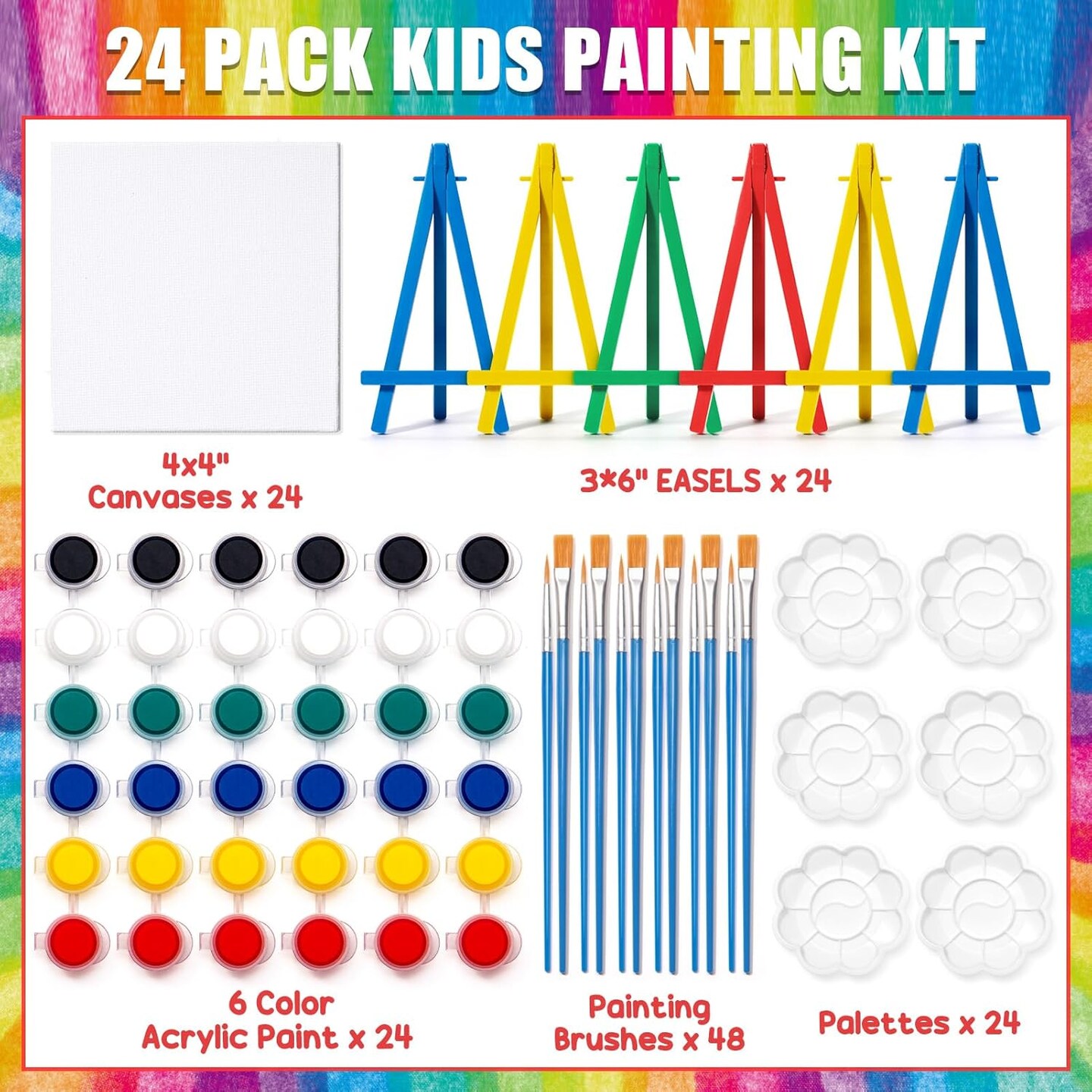 24 Set Mini Acrylic Paint Kit with Canvas, Plastic Easel, Brushes, Palette, Painting Kits for Kids Girls Boys, Art Set Gifts for Classroom Prizes Birthday Party Favors Easter Basket Stuffers