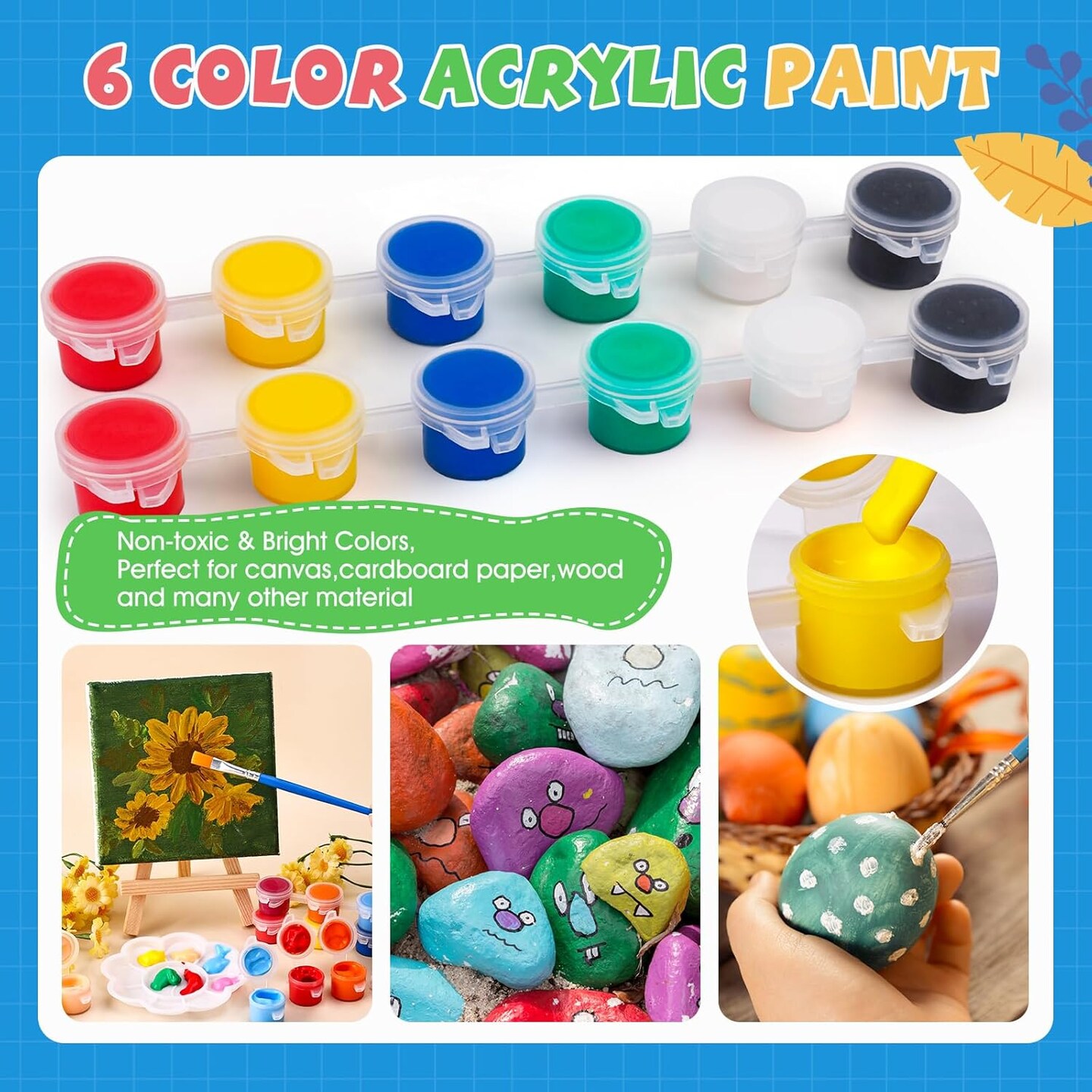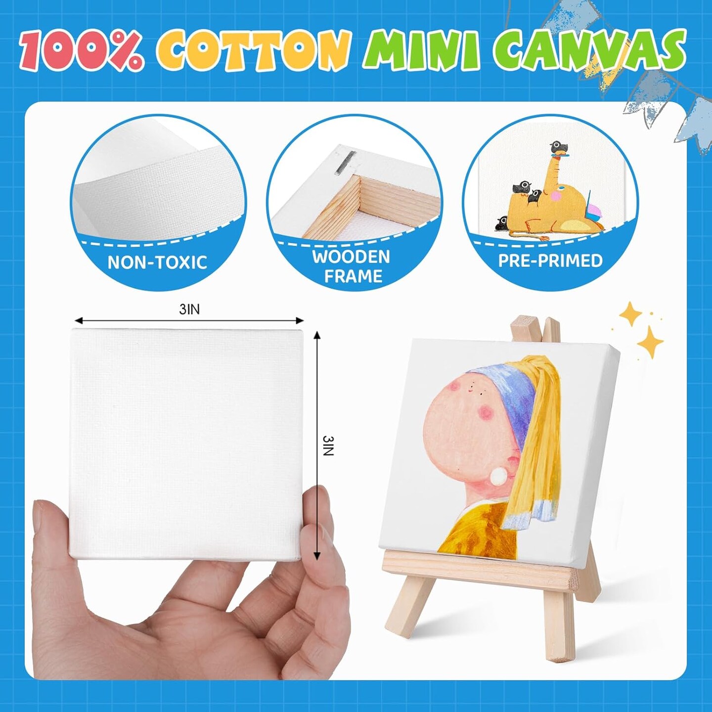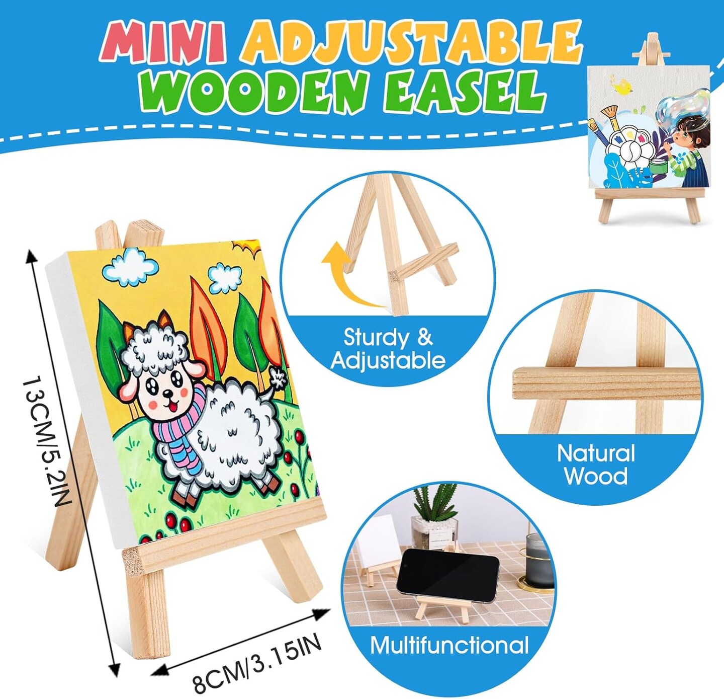 24 Set Mini Acrylic Paint Kit,Mini Stretched Canvas with Easel,Valentines Day Gifts,Acrylic Paint Strips,Paint Palettes,Painting Brushes, Mini Canvas and Easel Set for Kids Artists Beginner