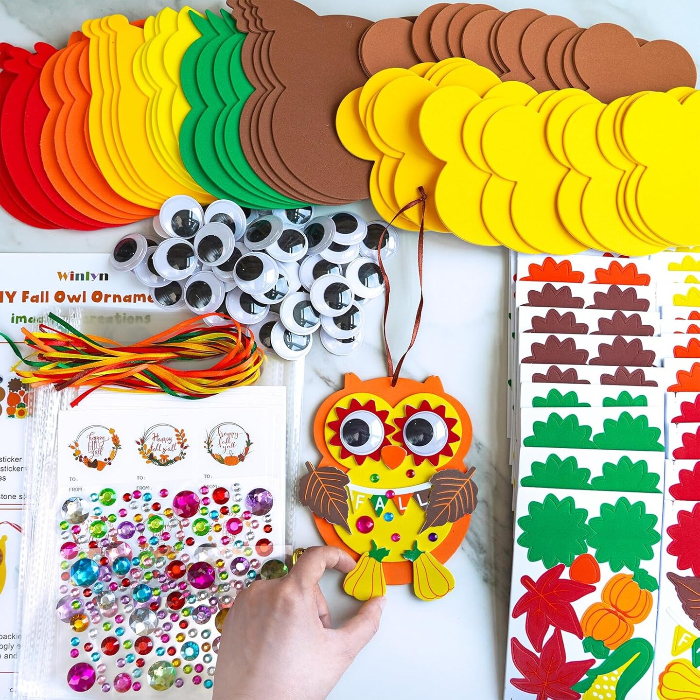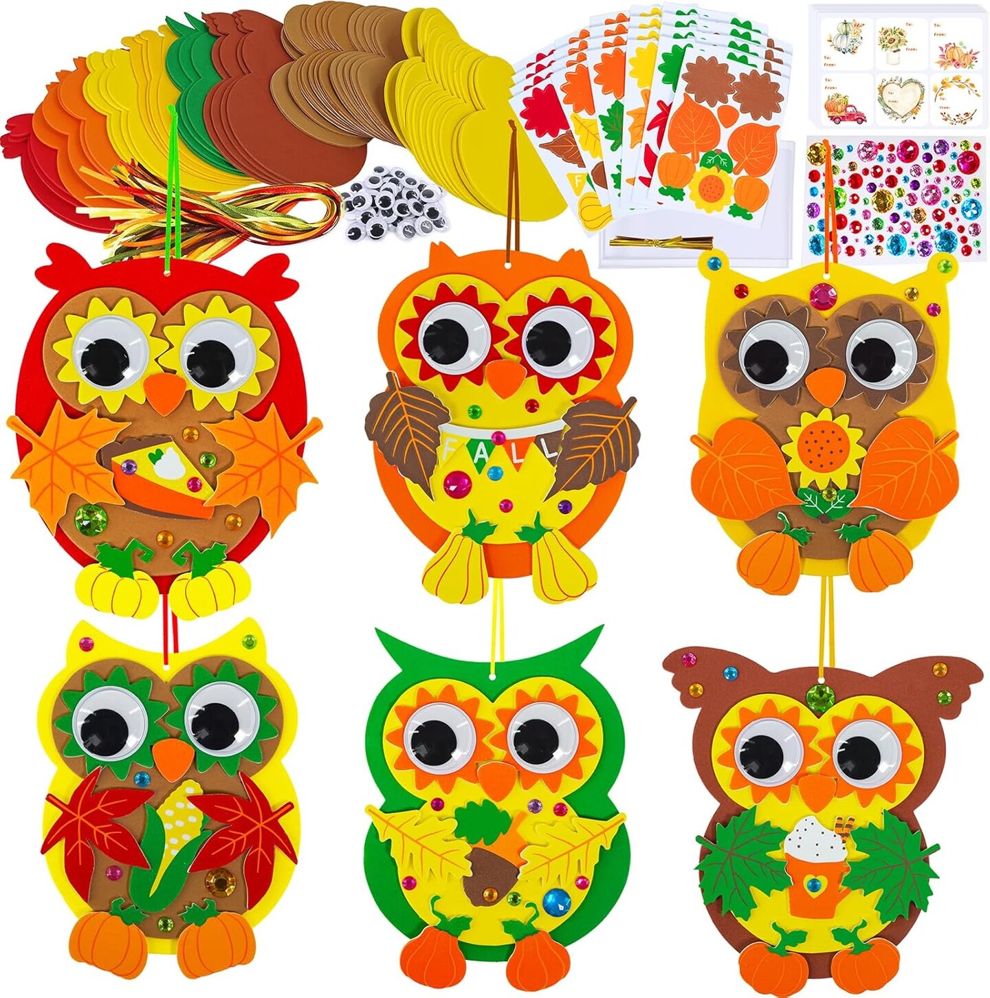 24 Sets Fall Craft Kits Autumn Crafts DIY Fall Owl Ornaments Decorations