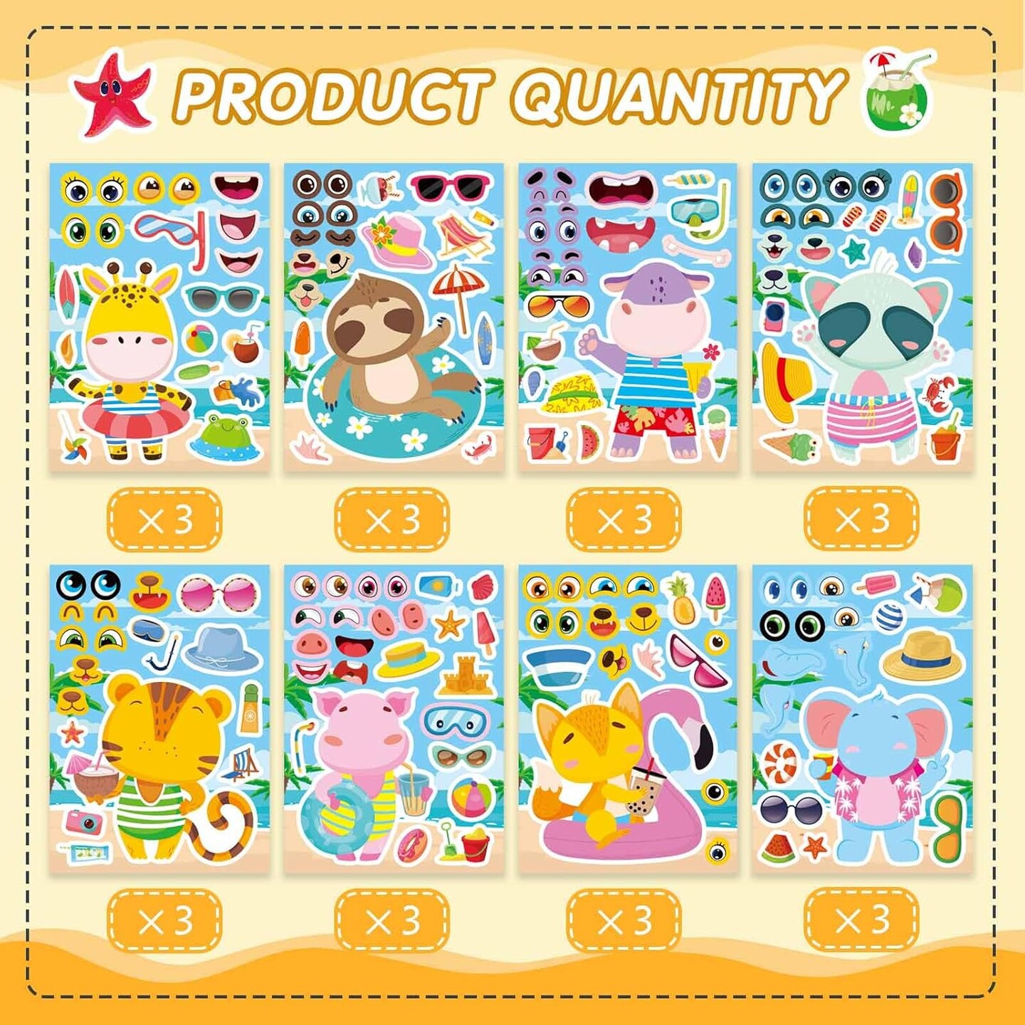 24 Sheets Summer Stickers for Kids - Summer Animal