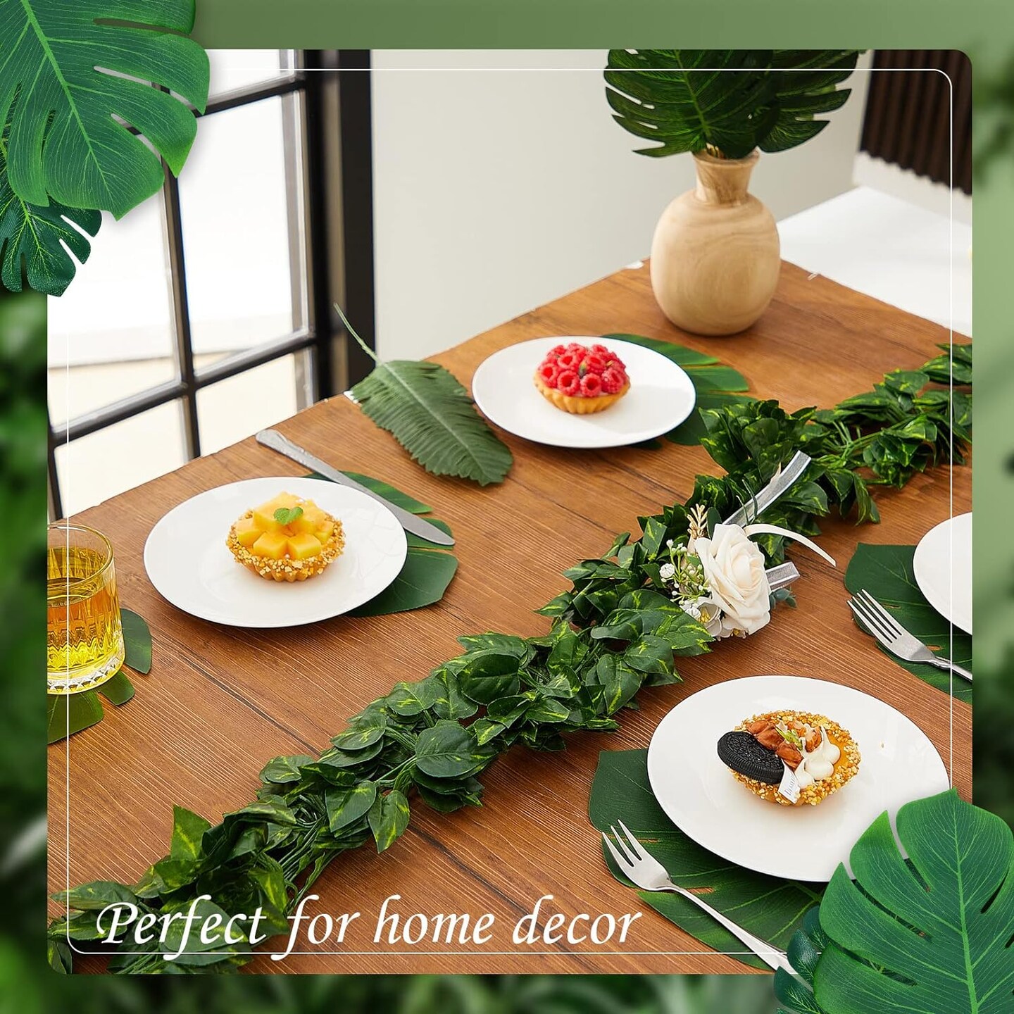 24 Strands 165 ft Artificial Vines with Leaves Tropical Leaf Garland and 60 Pcs Fake Monstera Palm Leaves Decor Faux Ivy Vines for Jungle Safari Plant Party Decoration