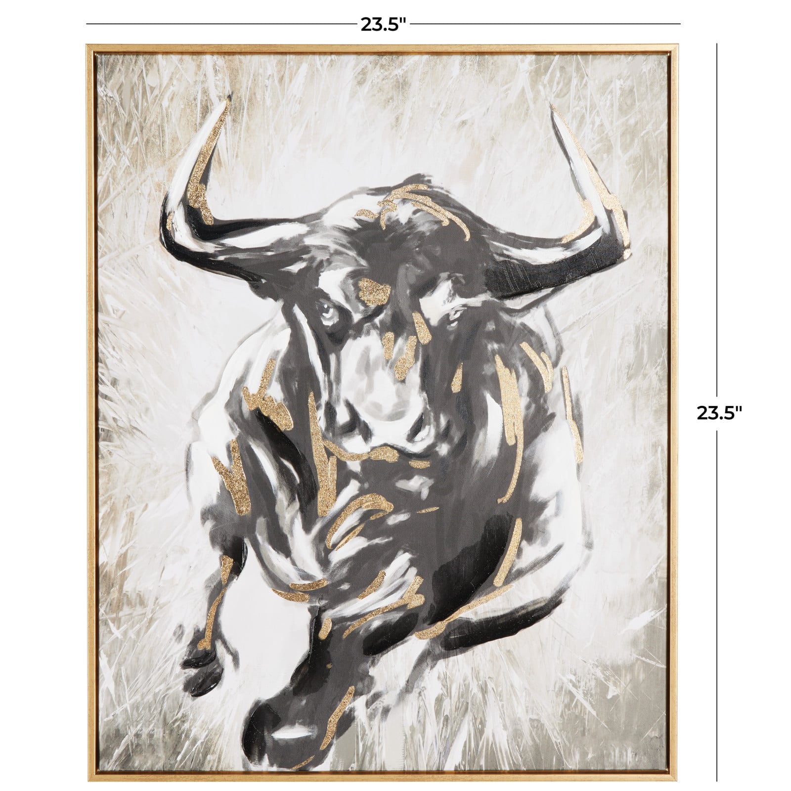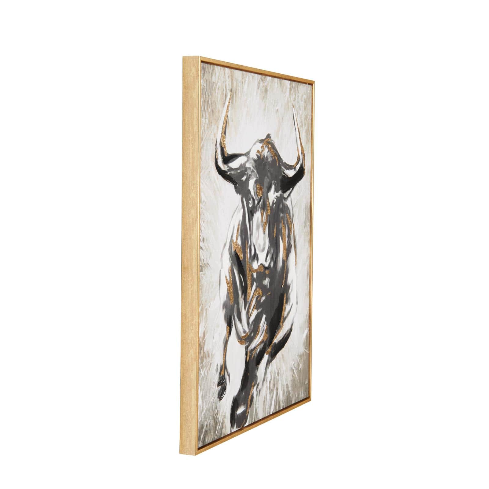 24" x 1.5" Gold Polystone Bull Shaded Running Living Room Framed Wall Art
