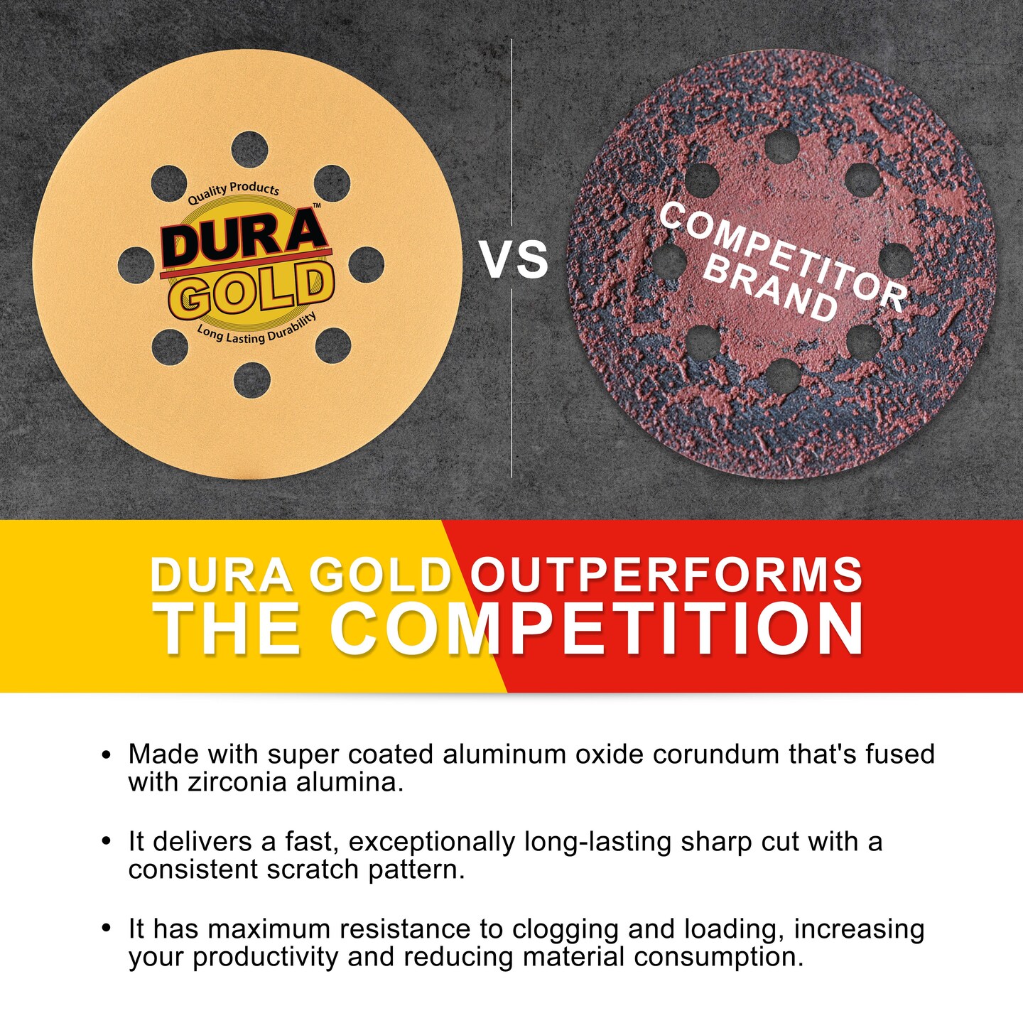 240 Grit - 5" Gold DA Sanding Discs - 8-Hole Pattern Hook and Loop - Box of 50