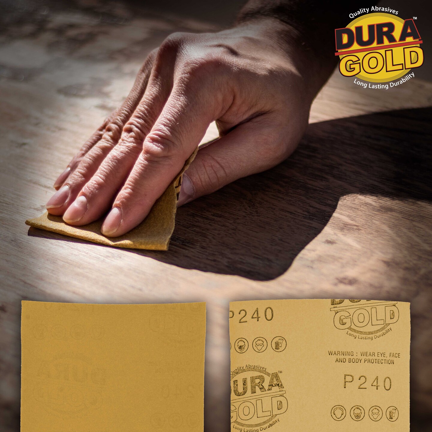 240 Grit Gold - 1/4 Sheet Plain Backing Sandpaper 5.5" x 4.5" - For Palm Sanders - Box of 400
