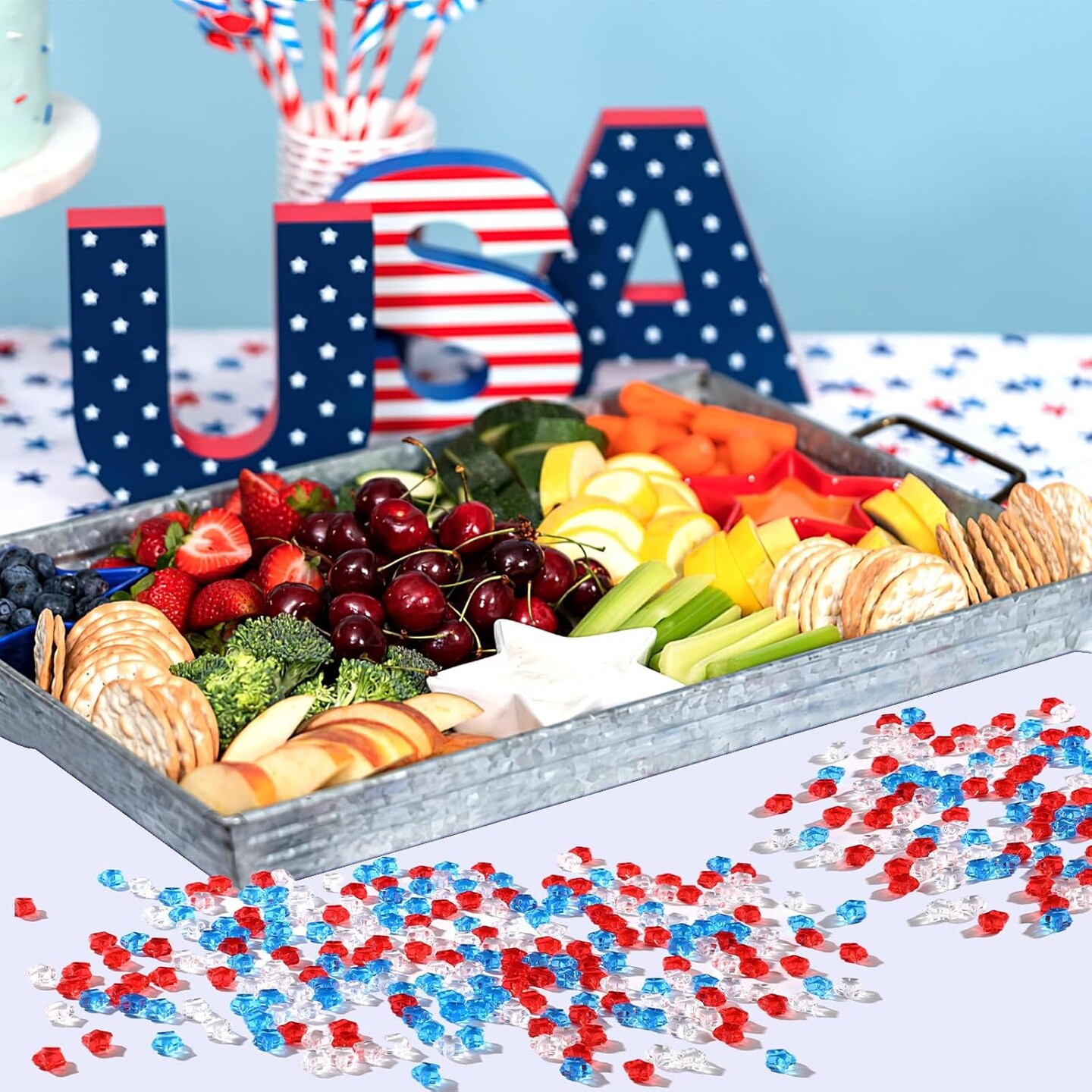 240 Pcs Patriotic Vase Filler Ice Rocks Acrylic 4th of July Star Crystals Gems Memorial Day Independence Day 3D Star Shaped Gems Decorations for Table Scatter, Party Wedding Arts Crafts