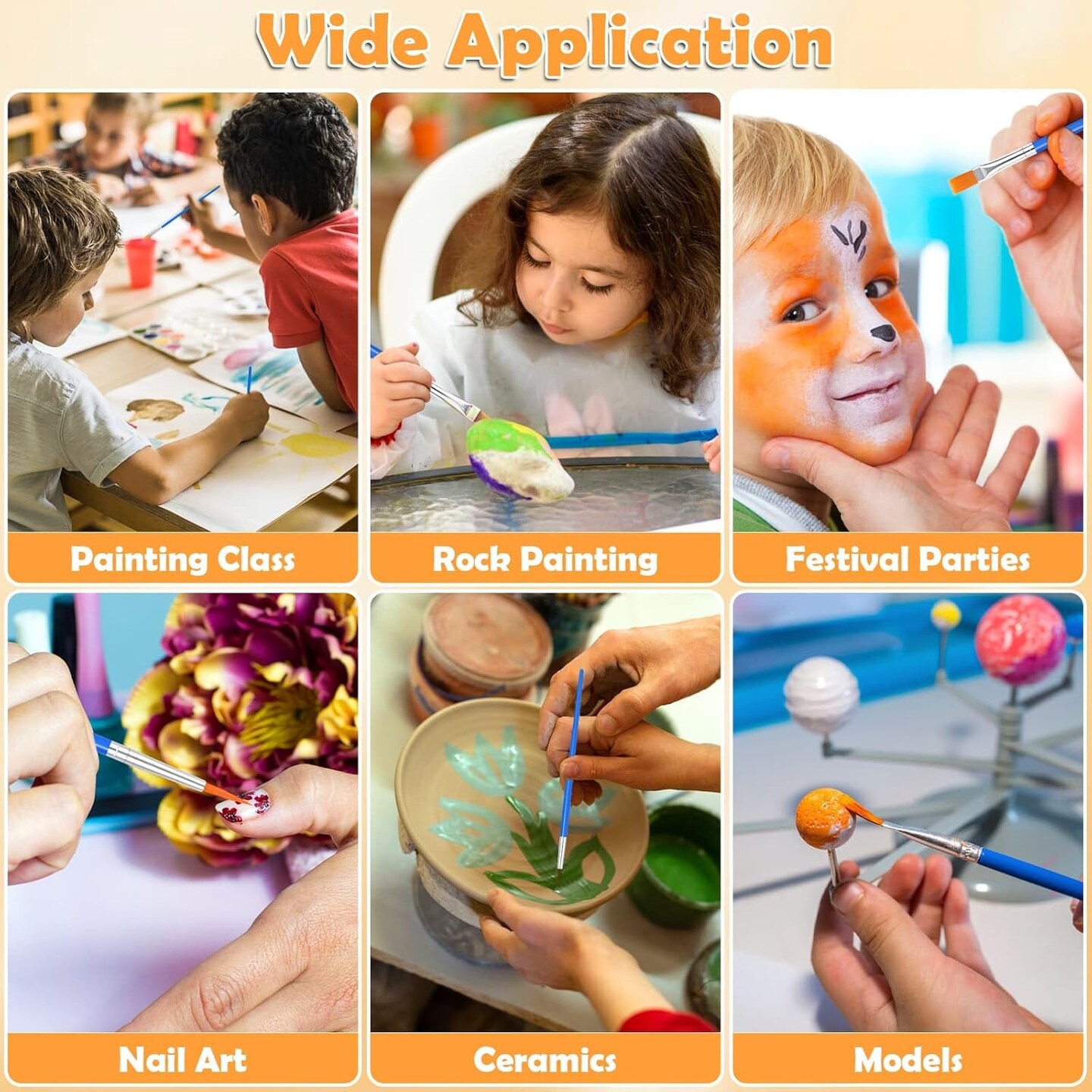 240 Pcs Small Paint Brush Bulk, Flat Fine Tip Artist Paint Brushes Set, Kids Classroom Acrylic Oil Watercolor Canvas Painting Crafts Paint Brushes for Body Face Nail Festival Parties