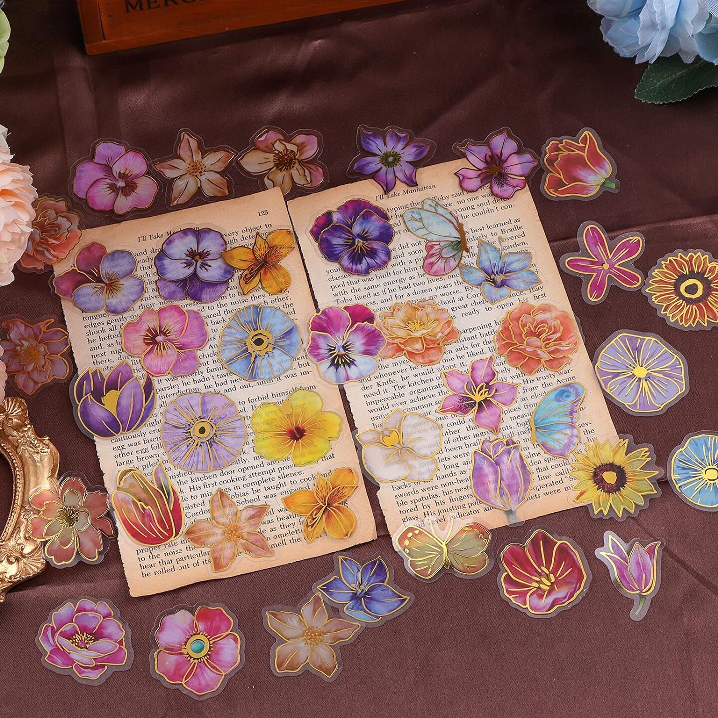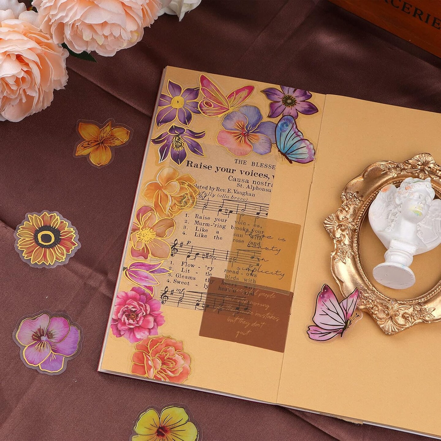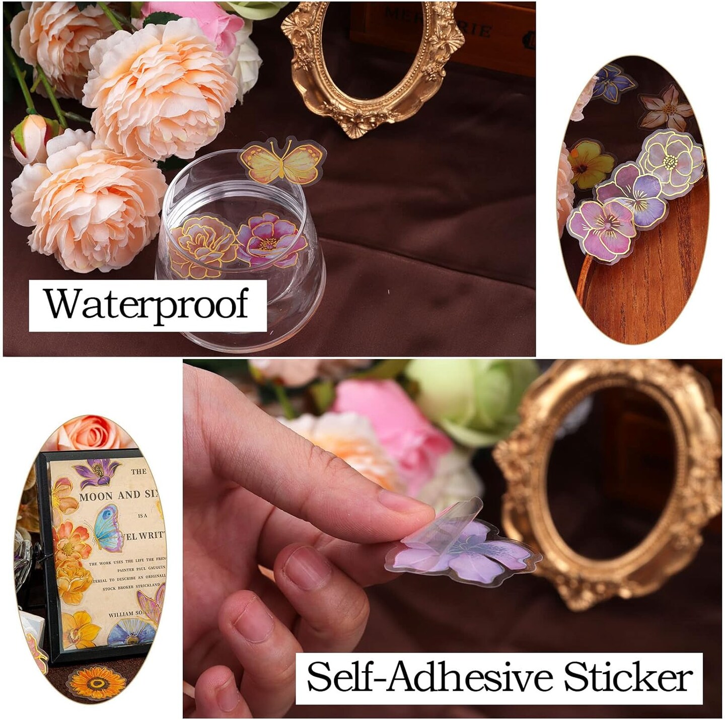 240 Pieces, Small Aesthetic Decorative Decals- Golden Floral Watercolor