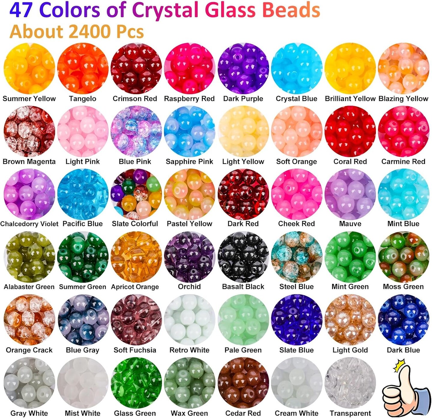 2400 PCS 8mm Glass Beads Bracelet Making Kit, 47 Colors Crystal Beads for Jewelry Making and DIY Crafts,4 Box Round Beads Suitable for Beginners