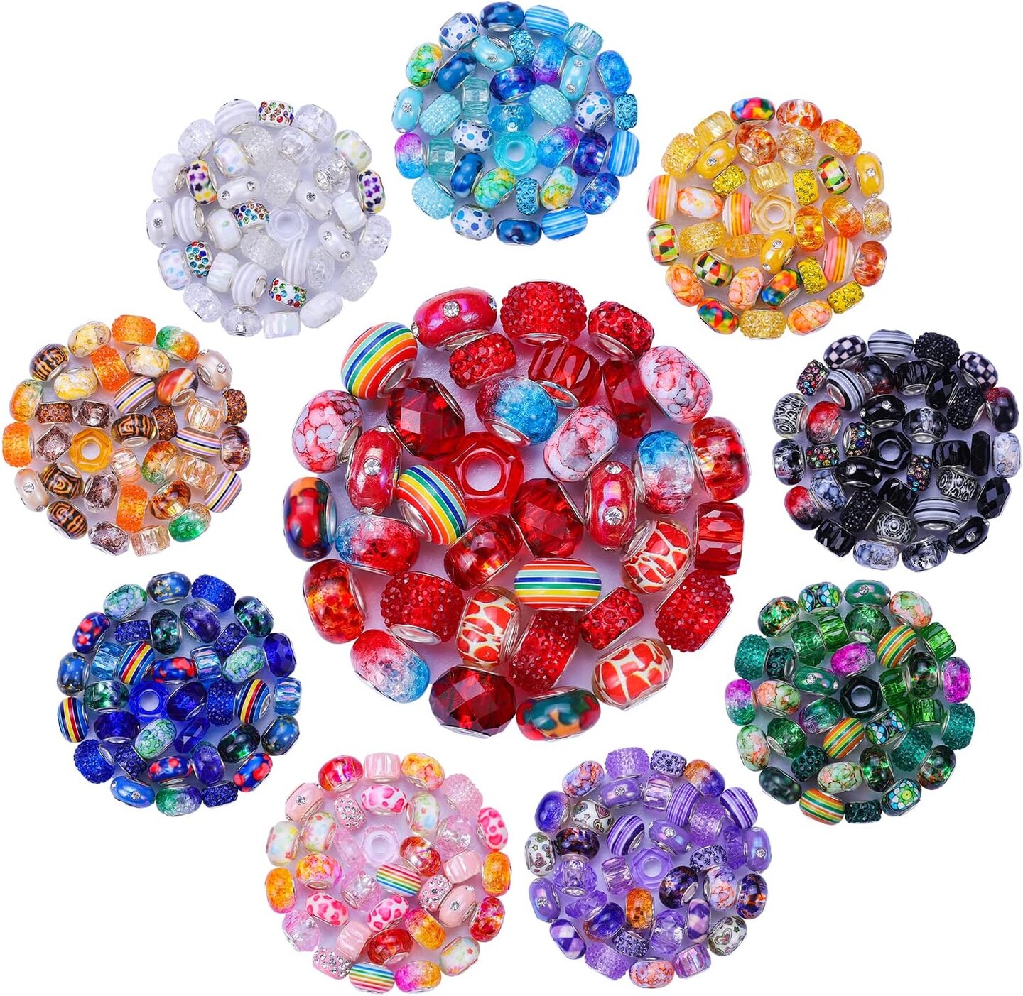 240pcs Assorted Large Hole European Lampwork Spacer Beads – Colorful Craft Beads (Mix Color)
