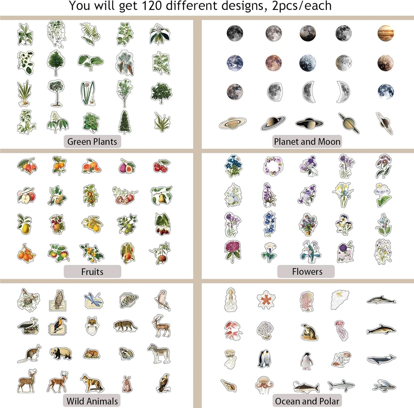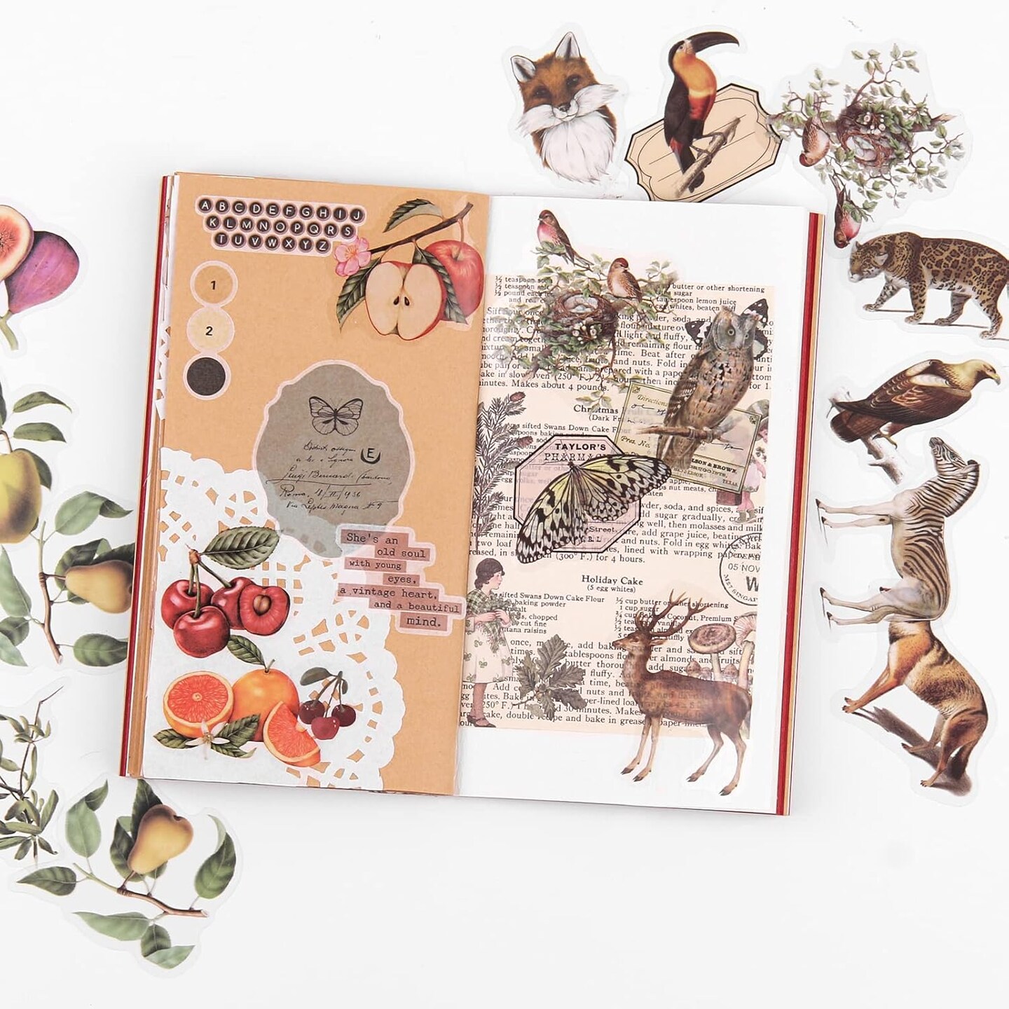 240PCS Nature Transparent Stickers Set – Vintage Flora & Fauna PET Stickers for Scrapbooking, Journaling, Photo Albums, Card Making & DIY Crafts