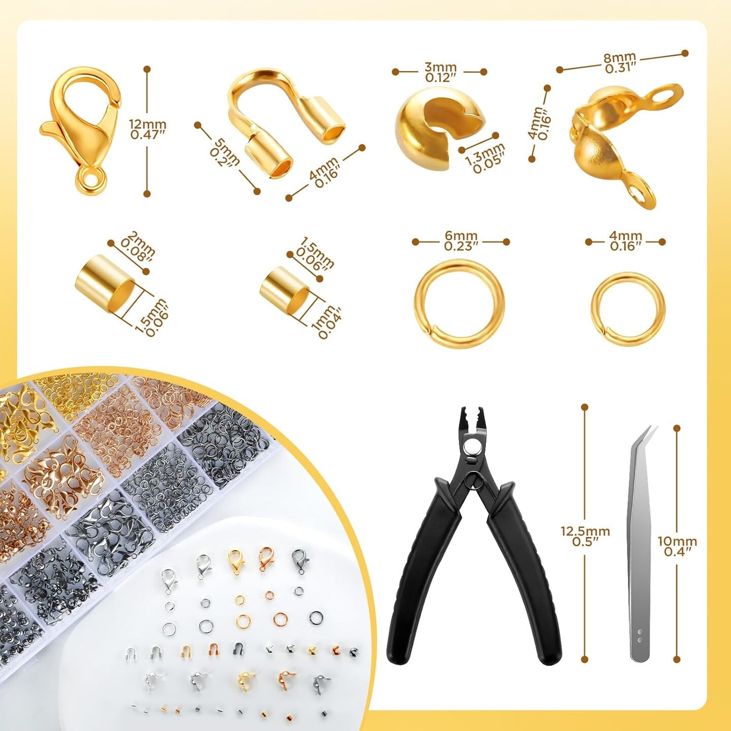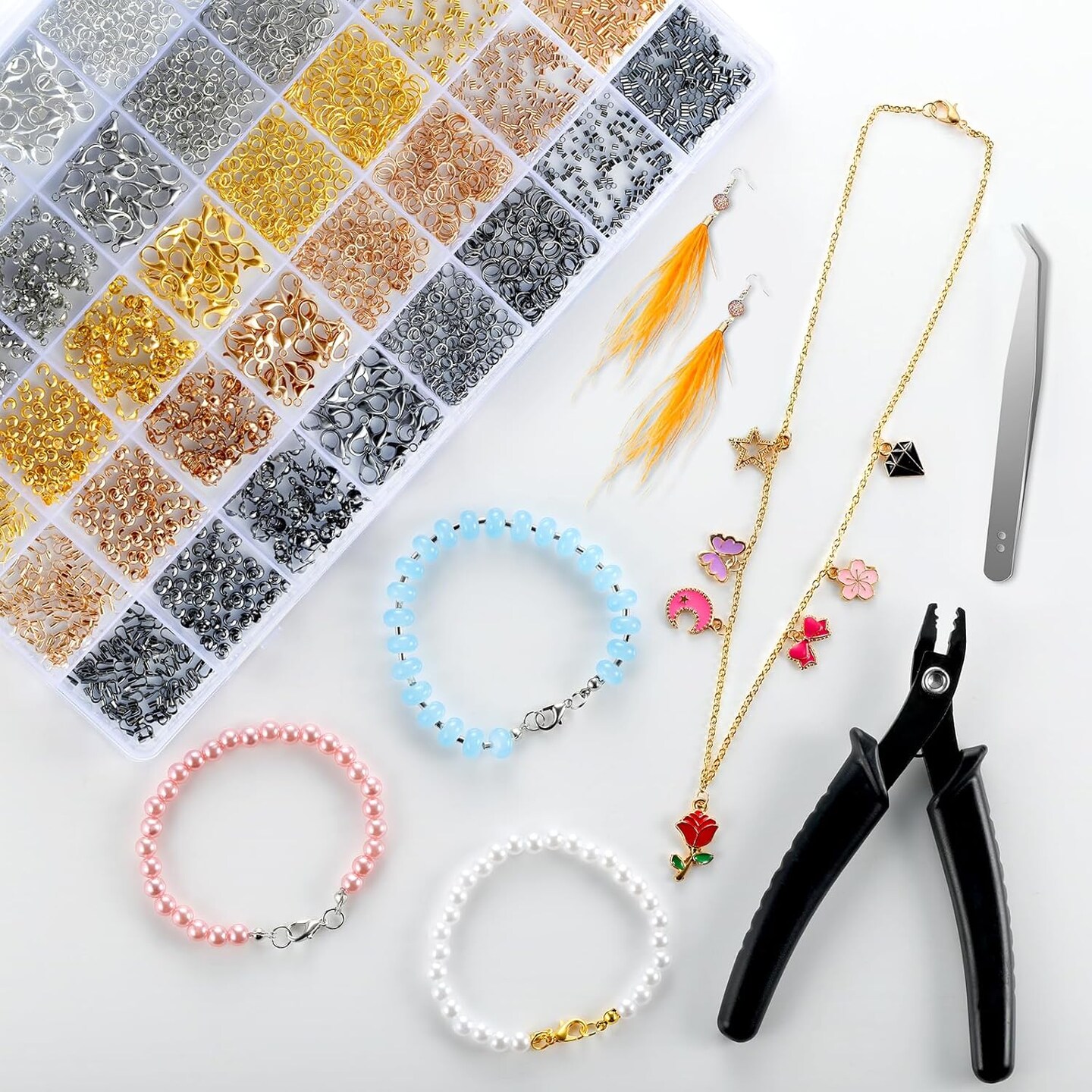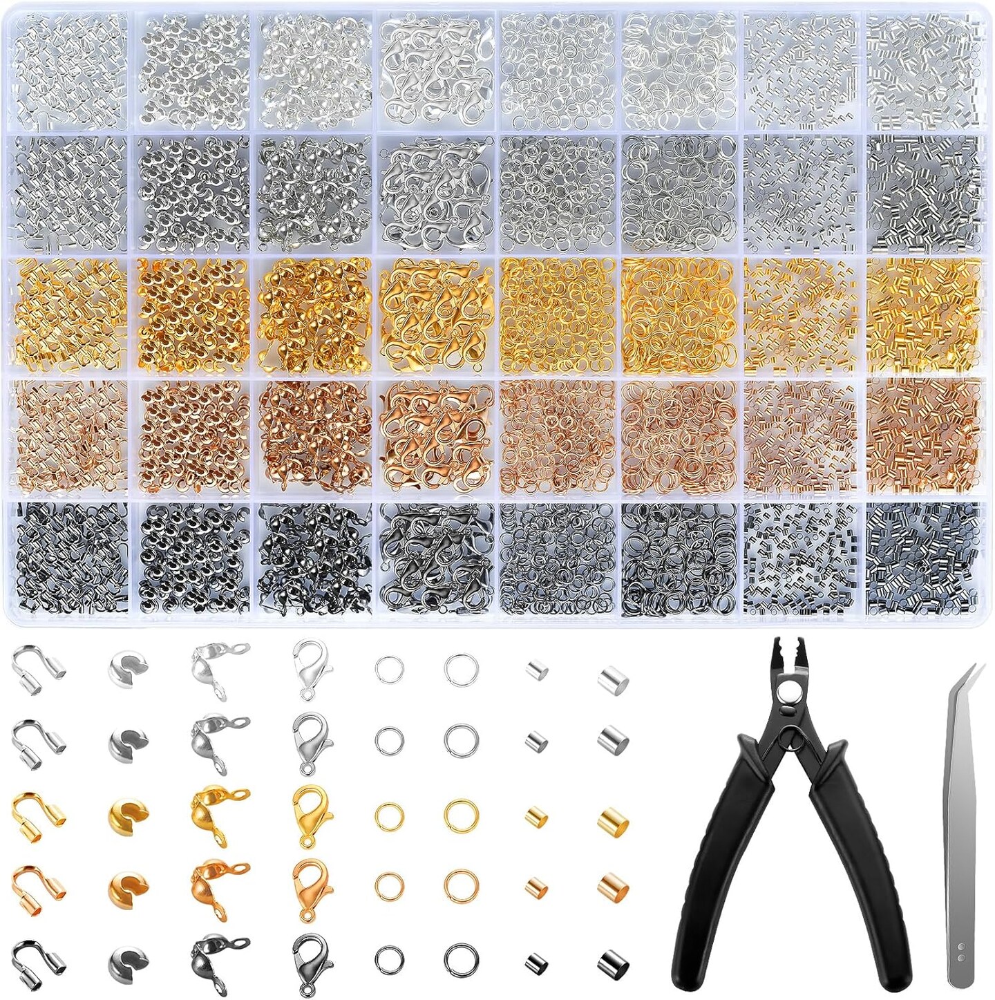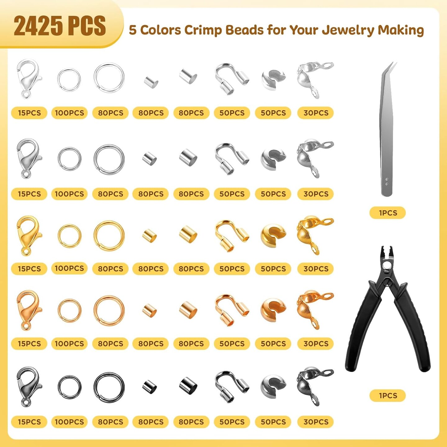 2425pcs Crimp Beads Jewelry Making Kit, Funtopia Crimp Tubes, Crimp Covers, Wire Guards, Lobster Clasp, Jump Ring for Bracelet Earring Necklace Making DIY Jewelry Repair Kit Supplies