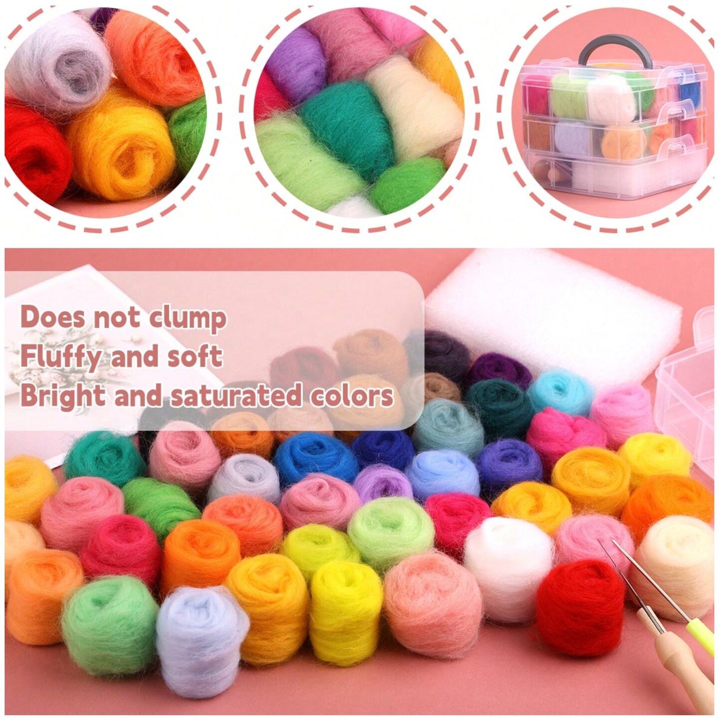 24-Color Needle Felting Starter Kit – Wool Roving & Supplies for DIY Craft Projects, Beginners & Fiber Art