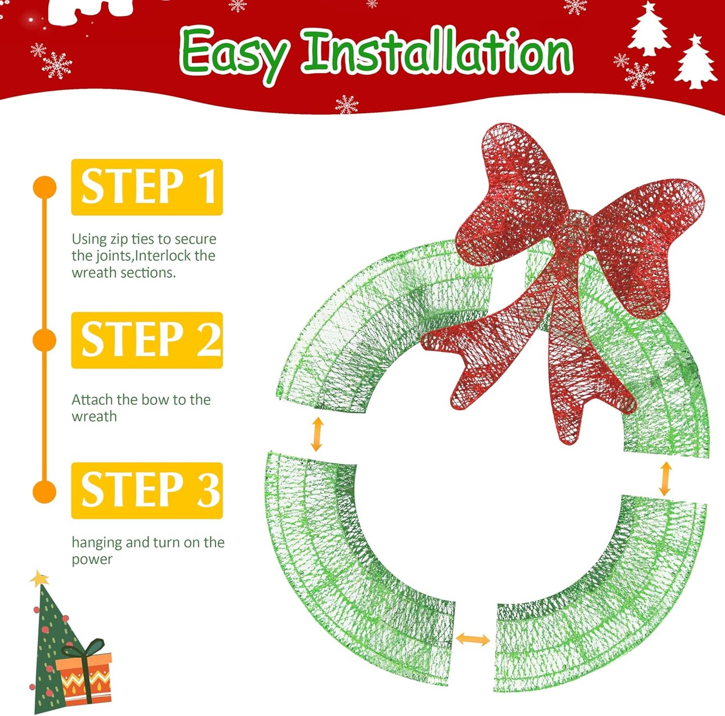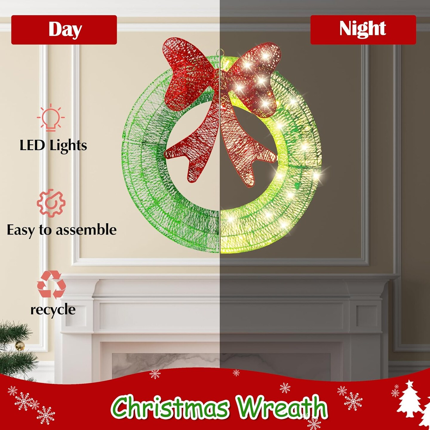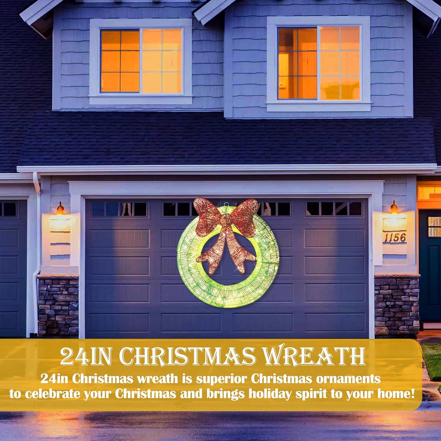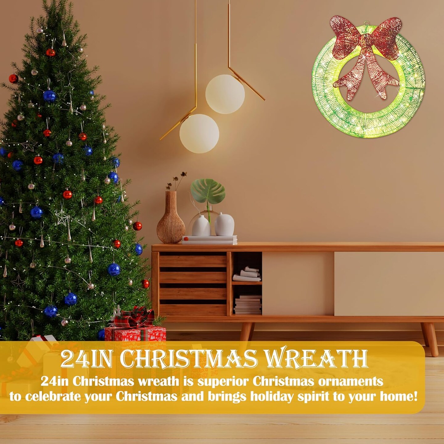 24in Outdoor Christmas Wreath Decoration (Green) 5"D x 24"W x 24"H