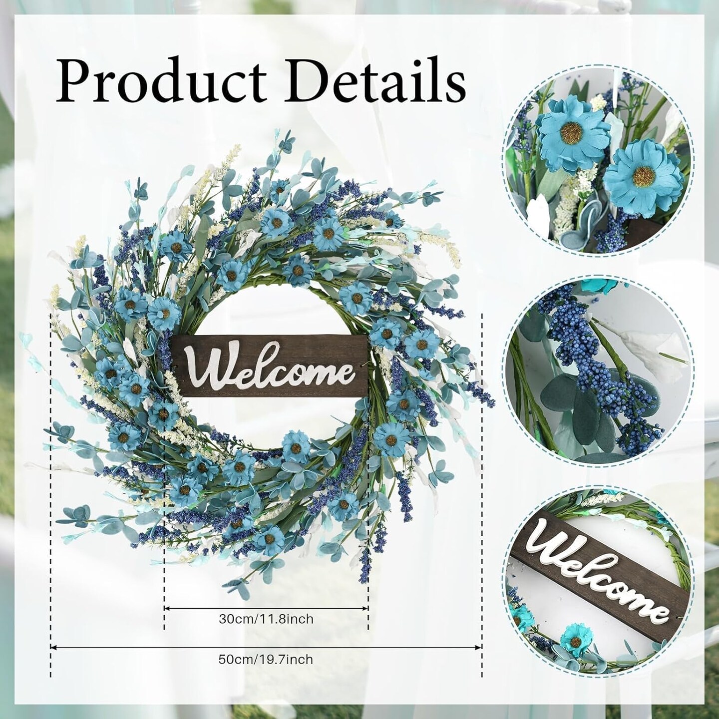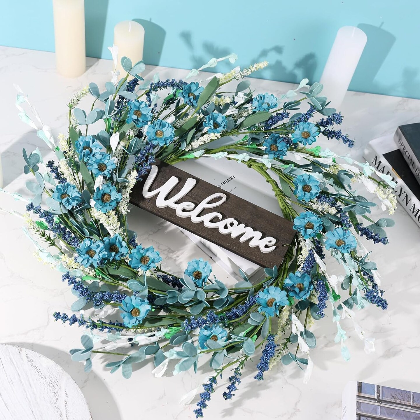24inch Artificial Blue Forsythia Spring Flower Wreath for Front Door