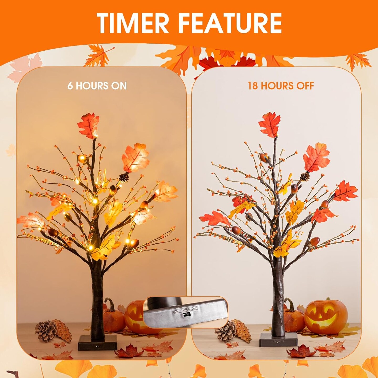 24-Inch Artificial Maple Tree With Lights for Fall Decorations(Yellow)