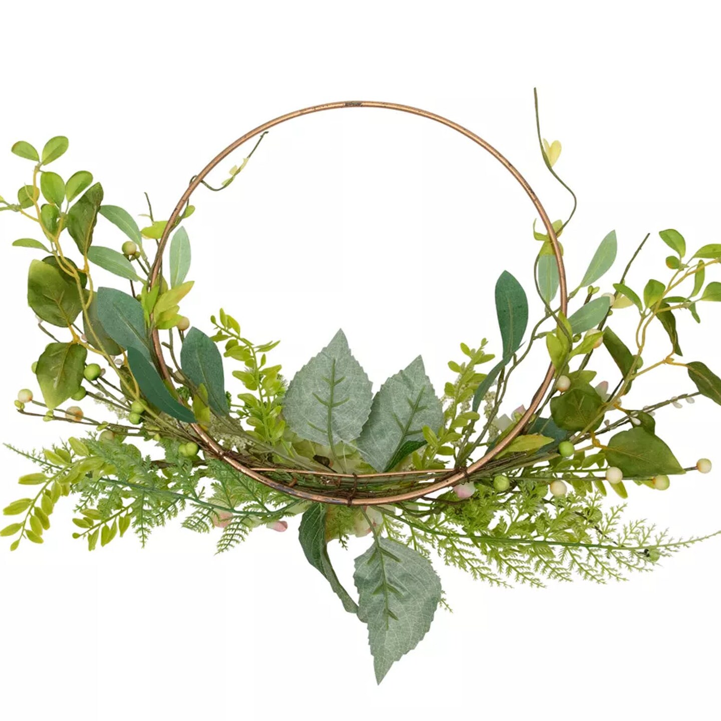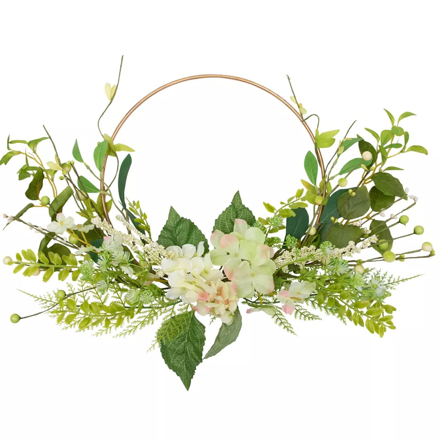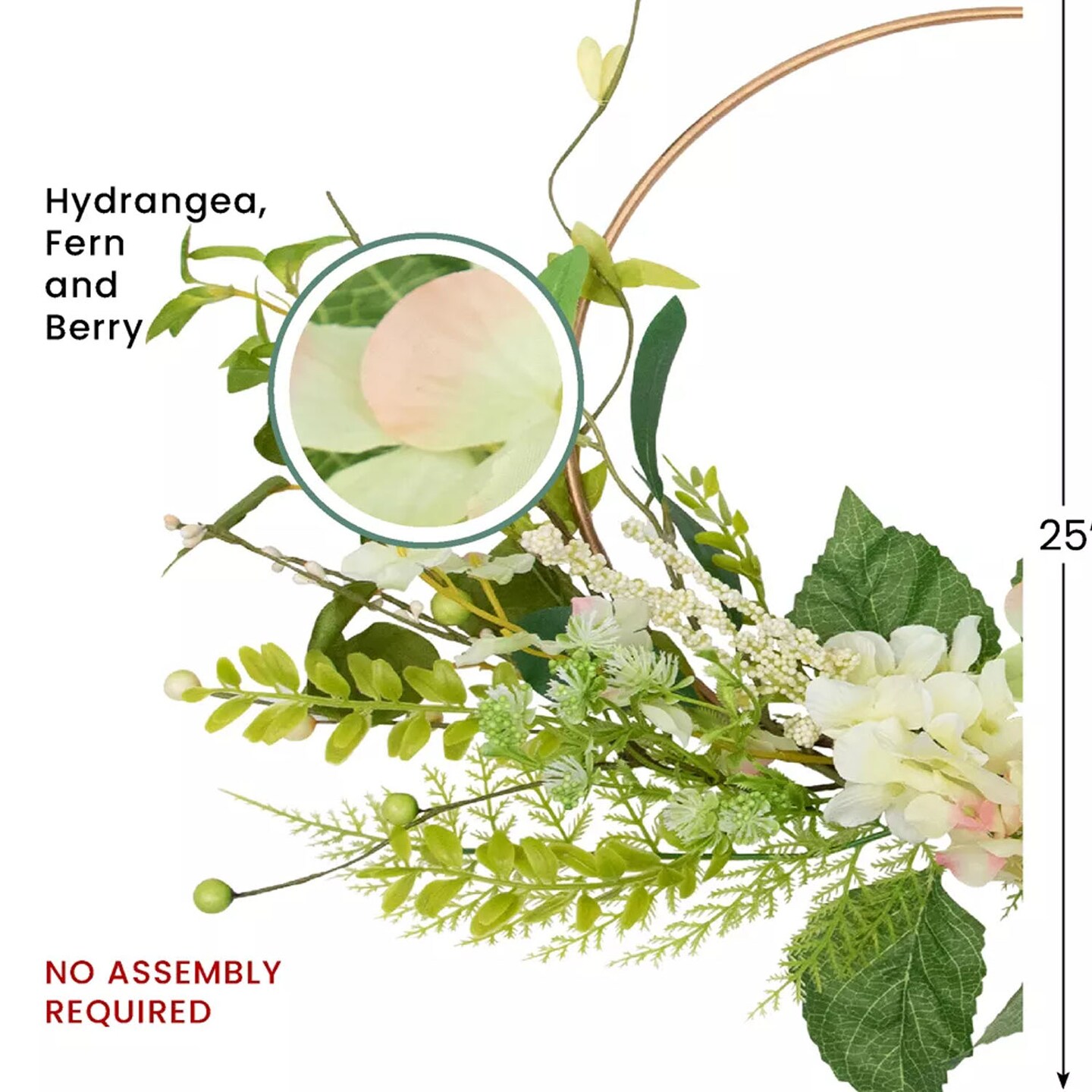 24-Inch Hydrangea and Fern Half Wreath with Gold Ring Elegant Floral Wall Décor