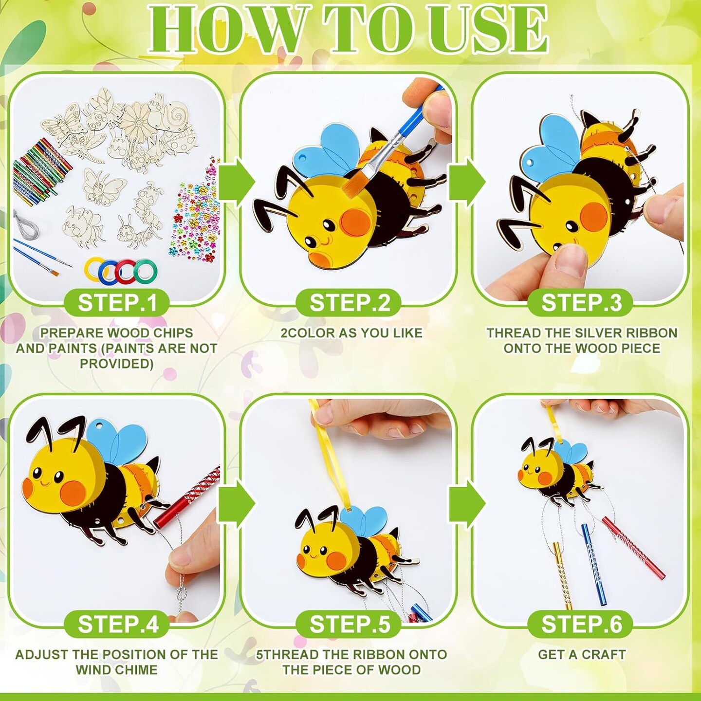 24-Pack DIY Spring Wind Chime Craft Kit – Make Your Own Wooden Hanging Ornaments with Flowers, Bees, and Butterflies, Perfect for Spring, Mother’s Day, Home, Garden, and Birthday Party Crafts