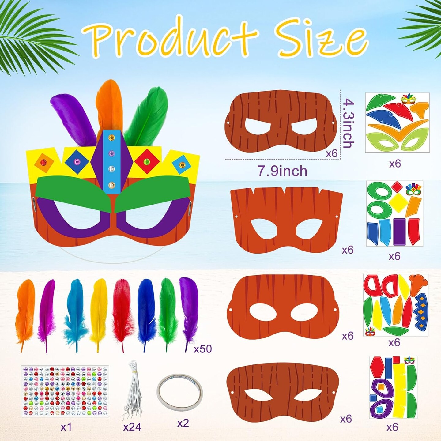 24-Pack DIY Tiki Mask Craft Kits